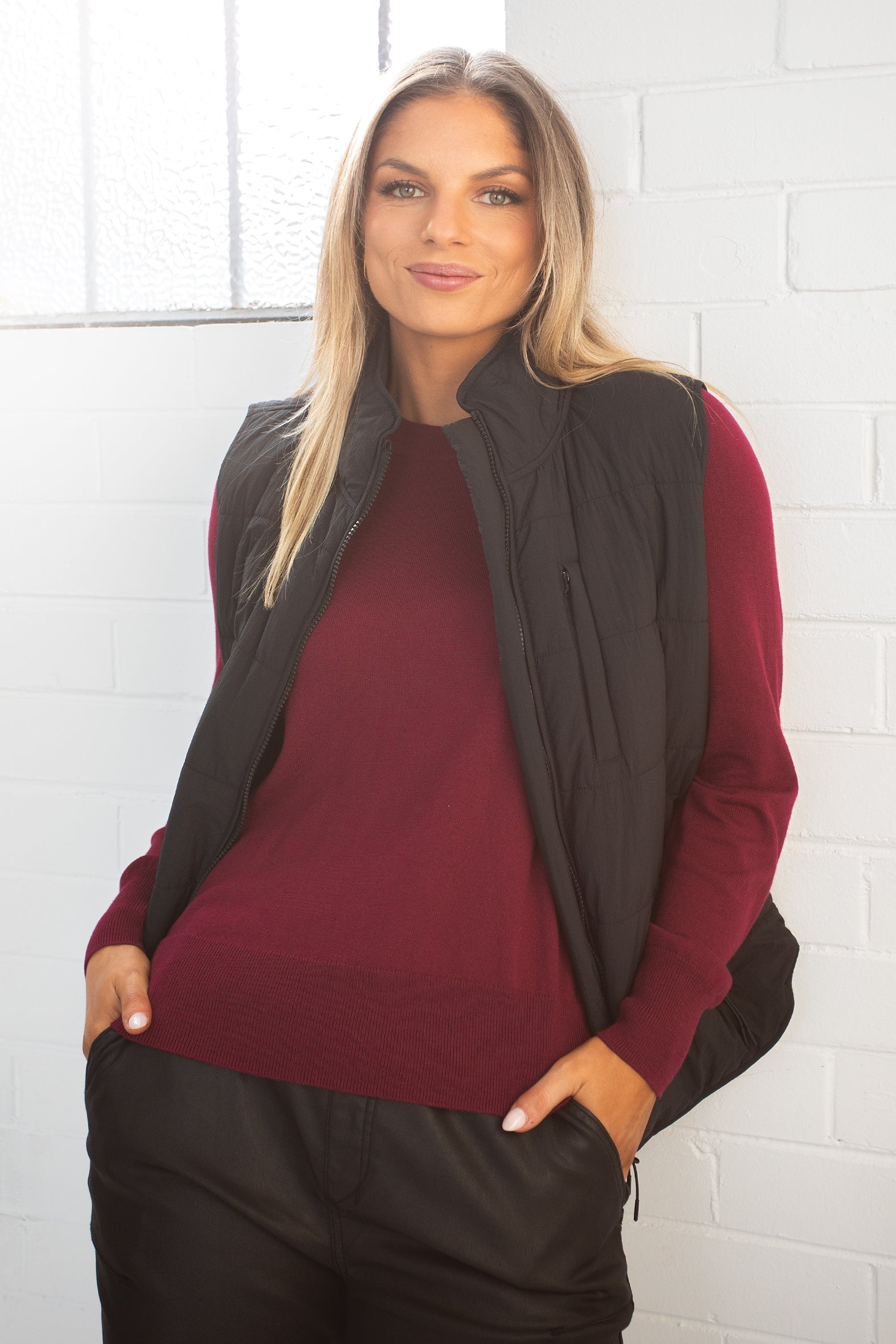 - Available in burgundy and natural melange with a hint of pink