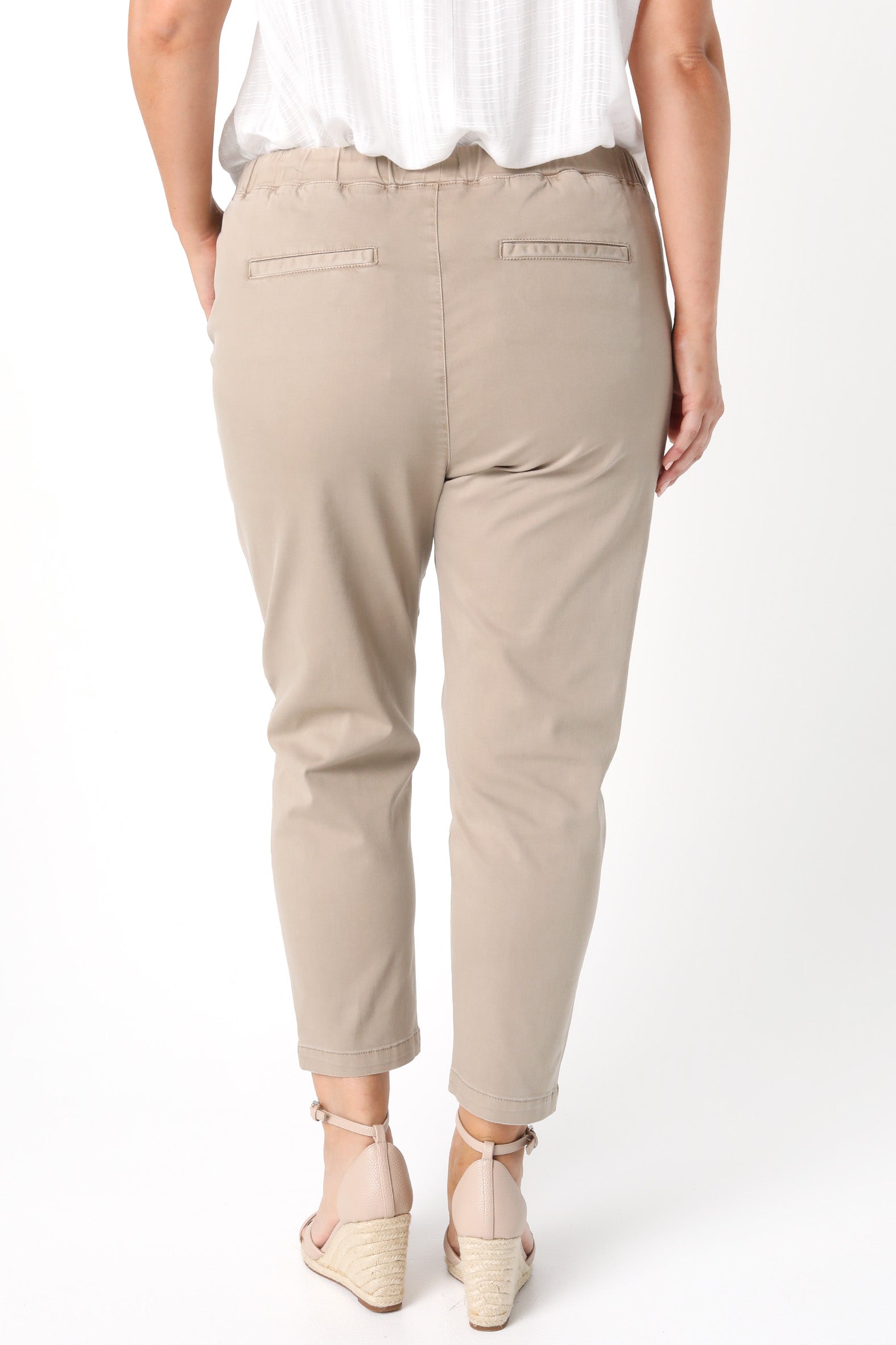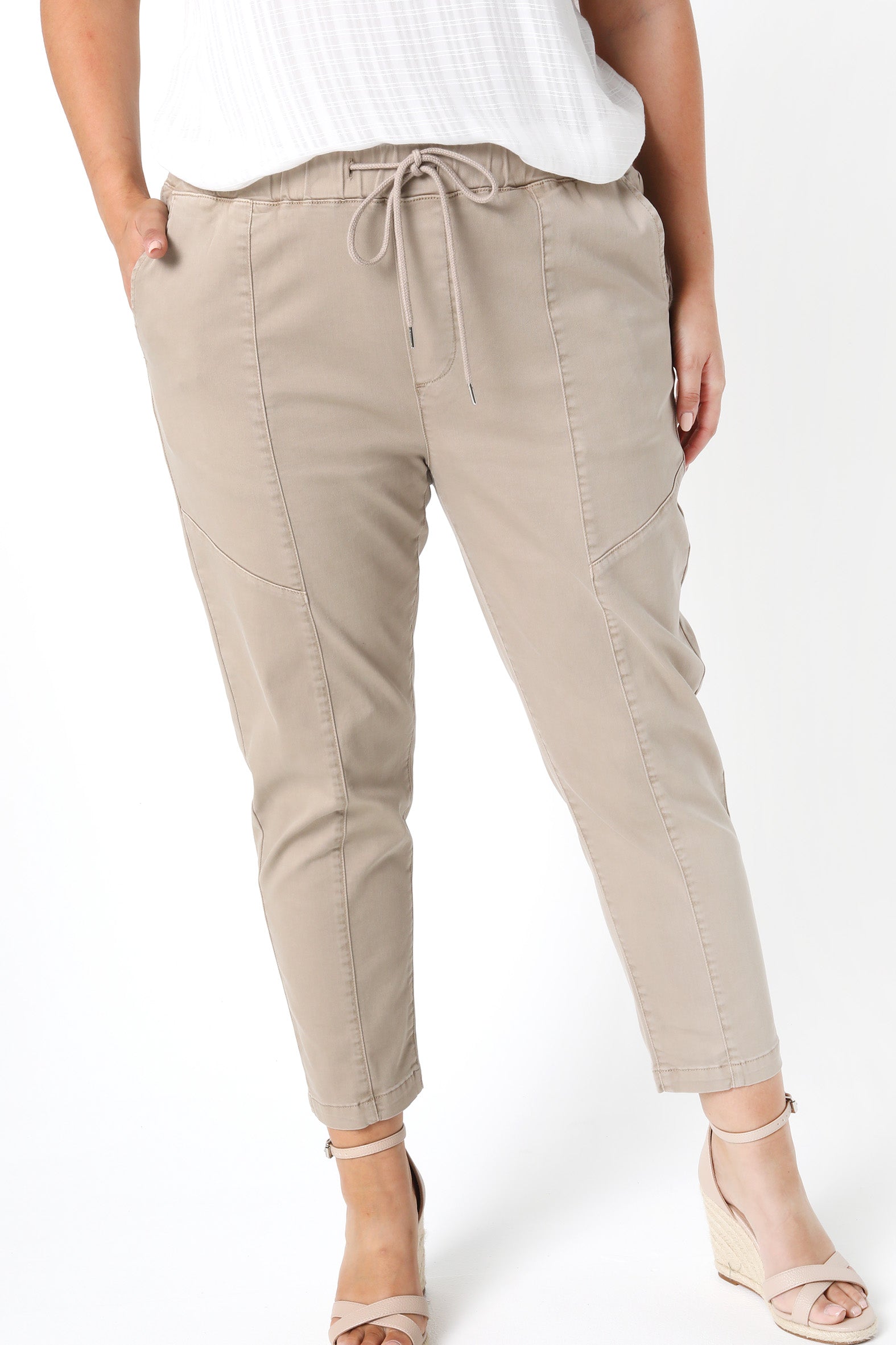 - Relaxed pull-on style with tapered leg