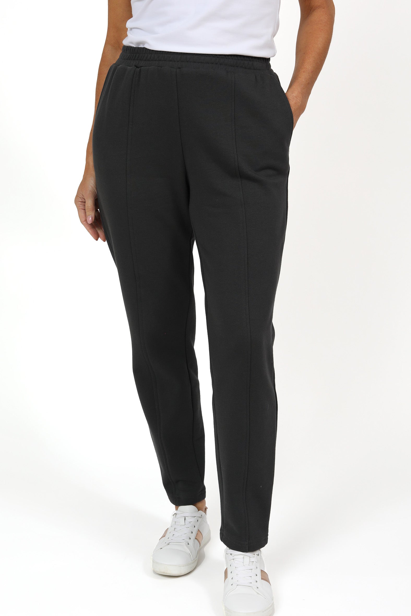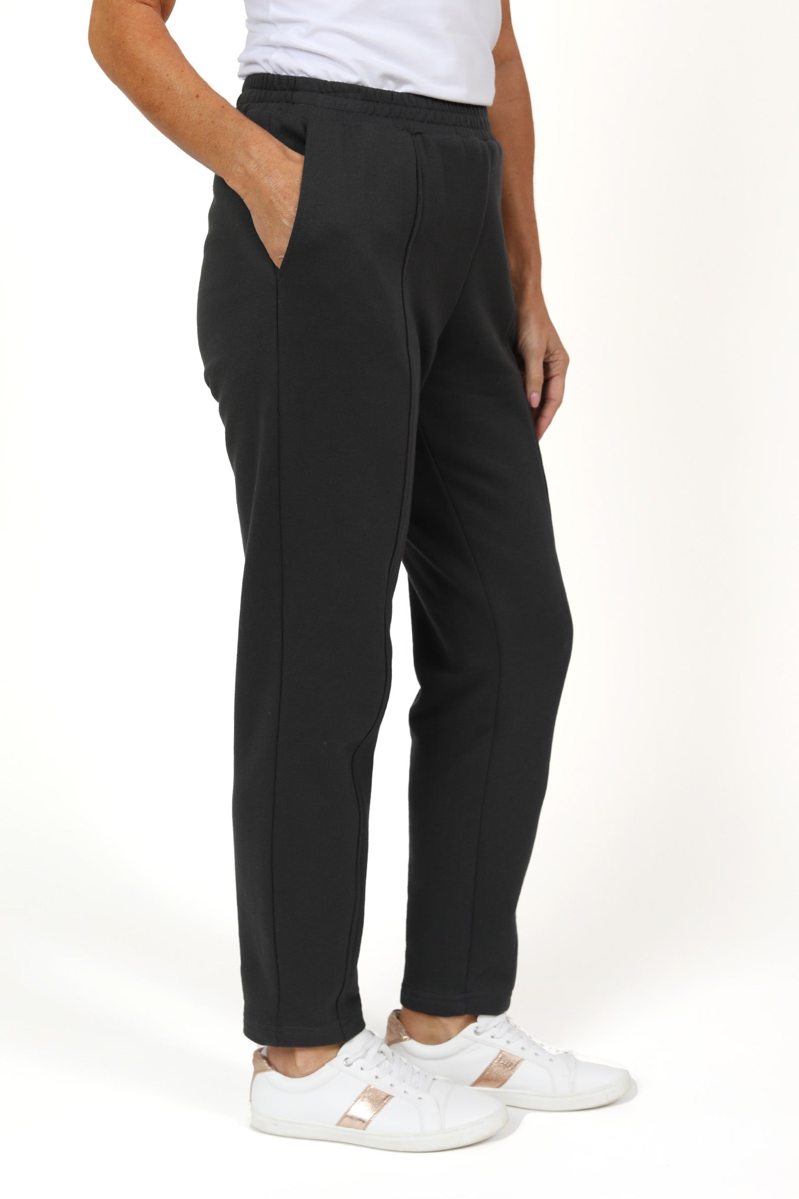 Made in a relaxed fit with a comfortable elasticised waist and legs that taper towards the ankle, they feature a centre front top stitched seam which highlights the flattering silhouette. Side pockets at the upper hip add a practical touch.
