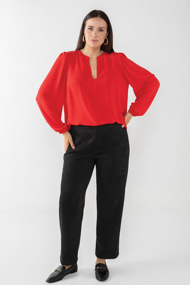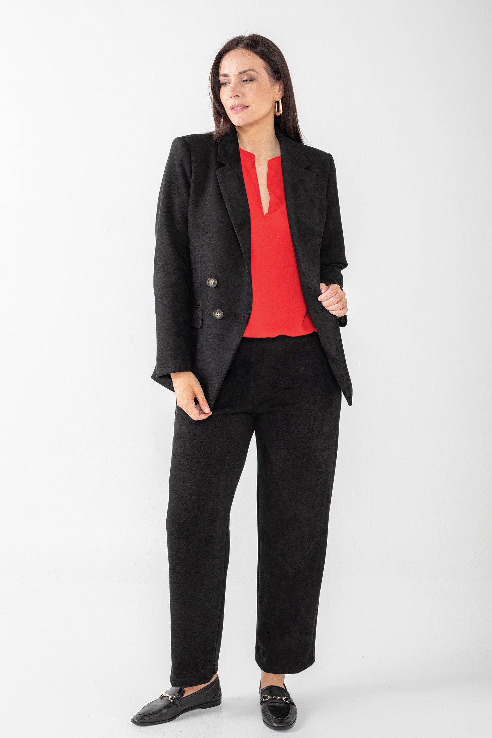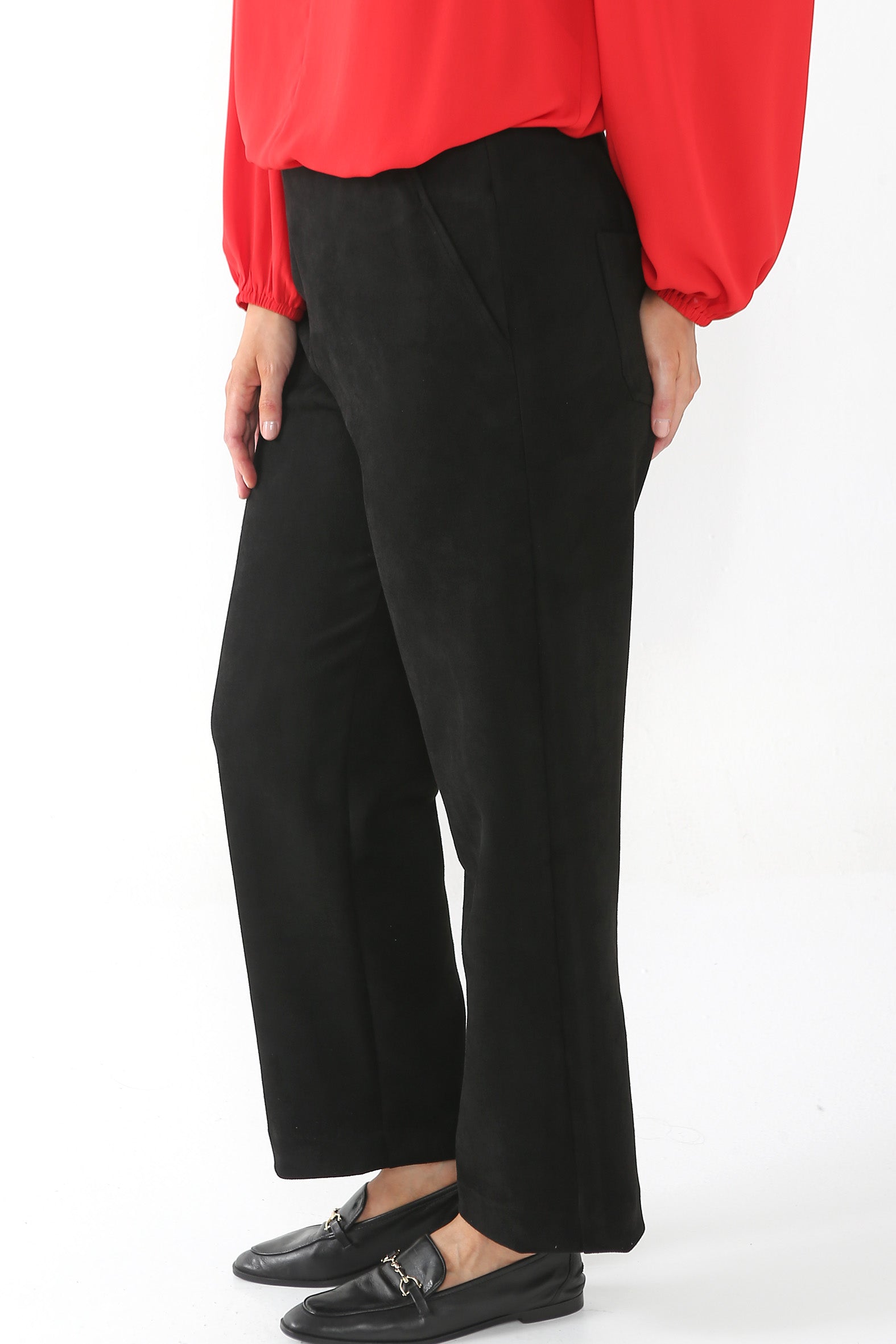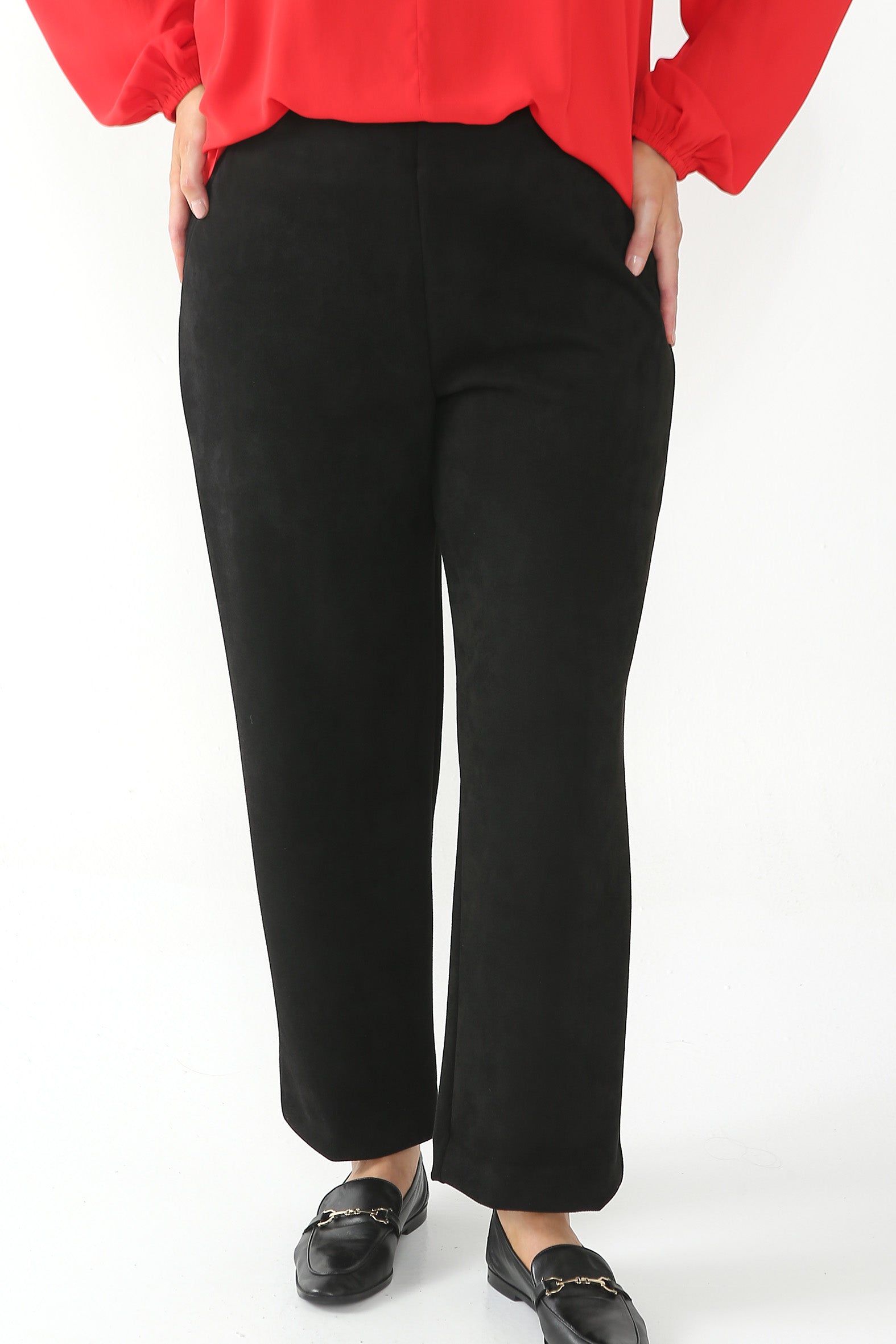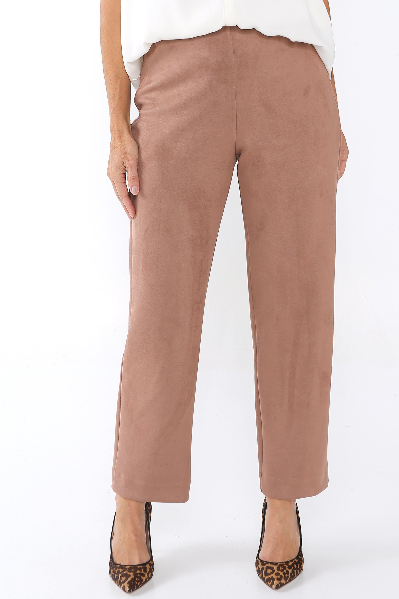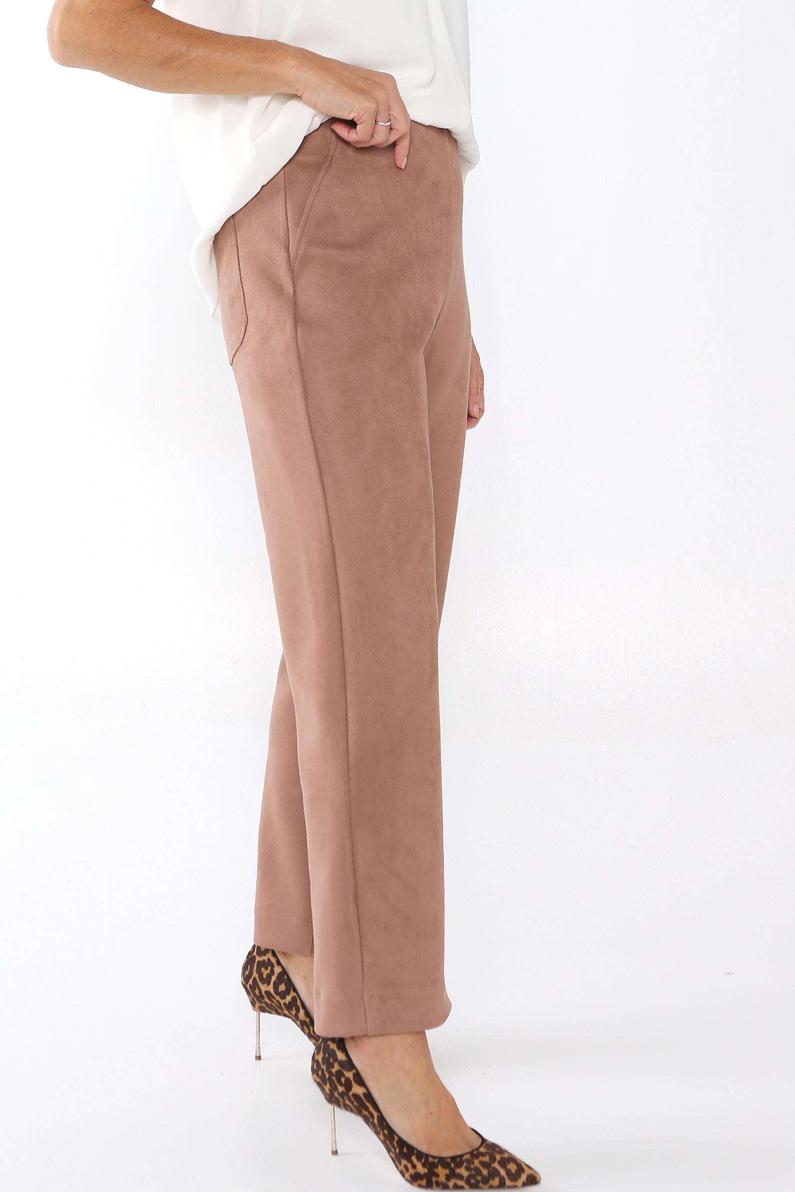 Step into everyday elegance with these straight leg pants in soft, velvety faux suede. Designed for comfort and confidence, they feature a flattering elasticised waistband and a hidden mesh panel that smooths the tummy. Whether styled with the Timeless Suede Blazer or your go-to knit, they're the perfect blend of polish and ease.