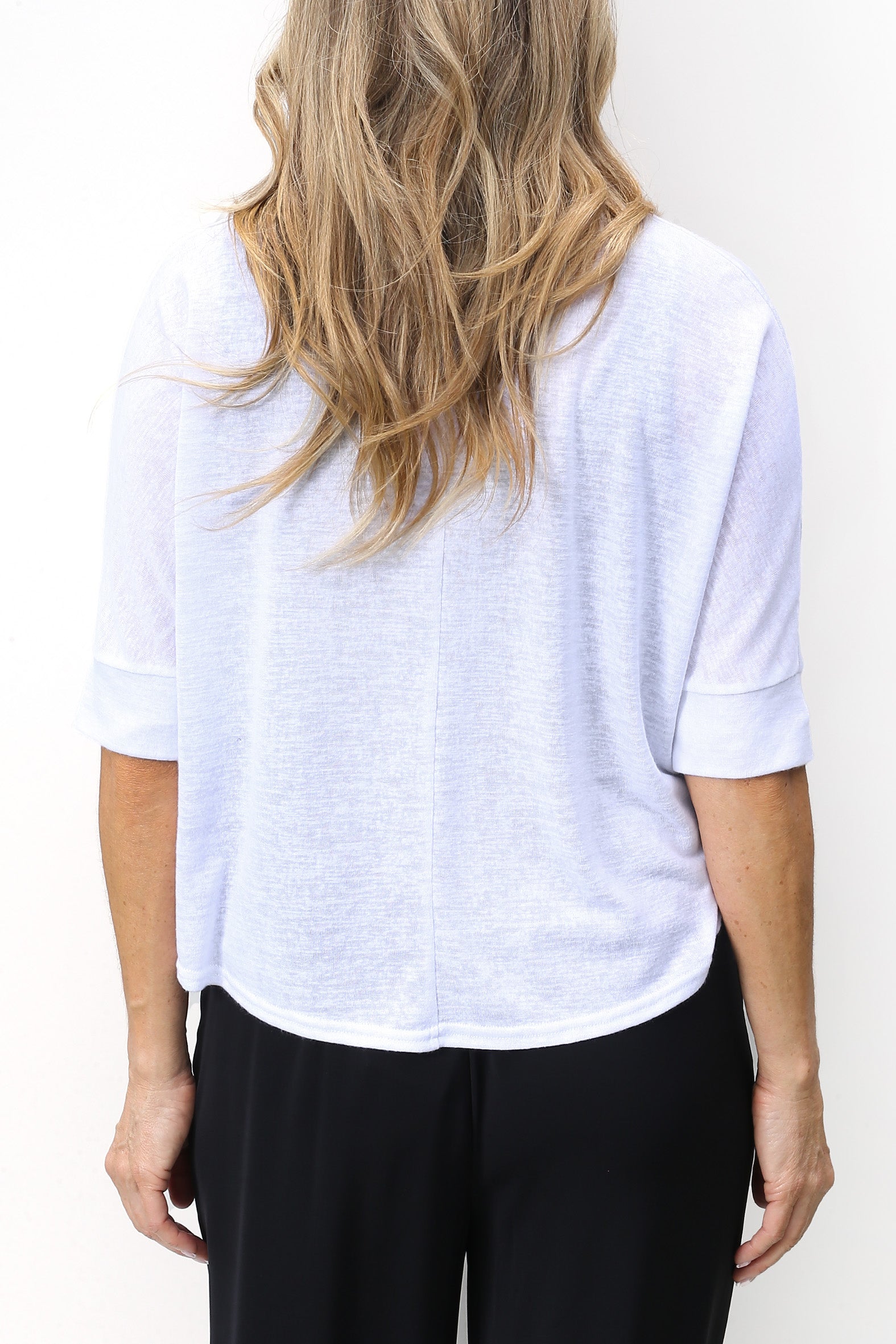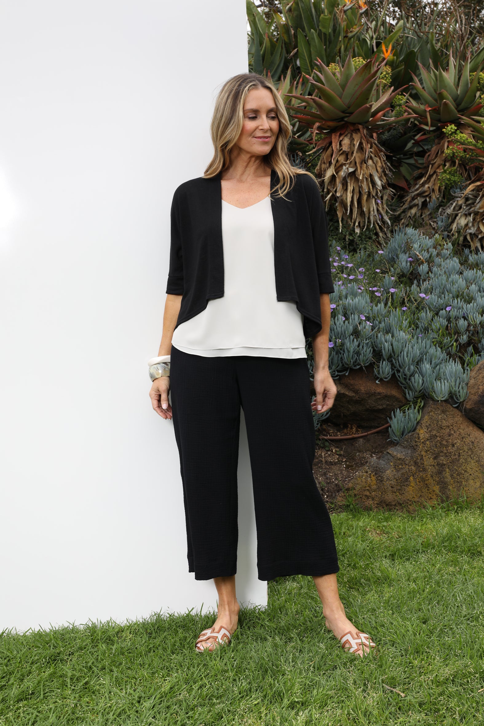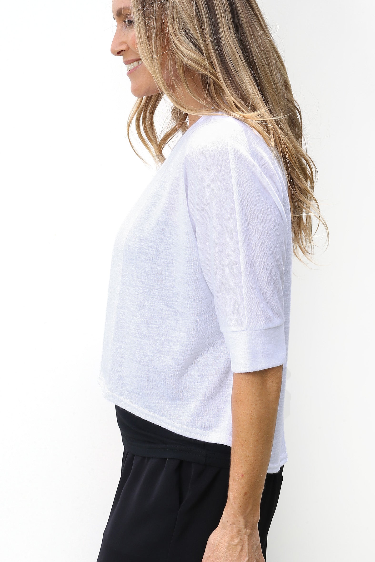 Elevate your layering collection with this elbow-length dolman sleeve cropped cardigan, crafted from our signature Modal/polyester single jersey knit – a luxuriously soft, breathable fabric. The effortless edge-to-edge design with the asymmetrical hemline - longer at the back than the front - make this cardigan the ideal co-ordinate for wide pants and sleeveless dresses offering a relaxed, modern silhouette. Lightweight and comfortable this versatile cardigan is the perfect finishing layer.