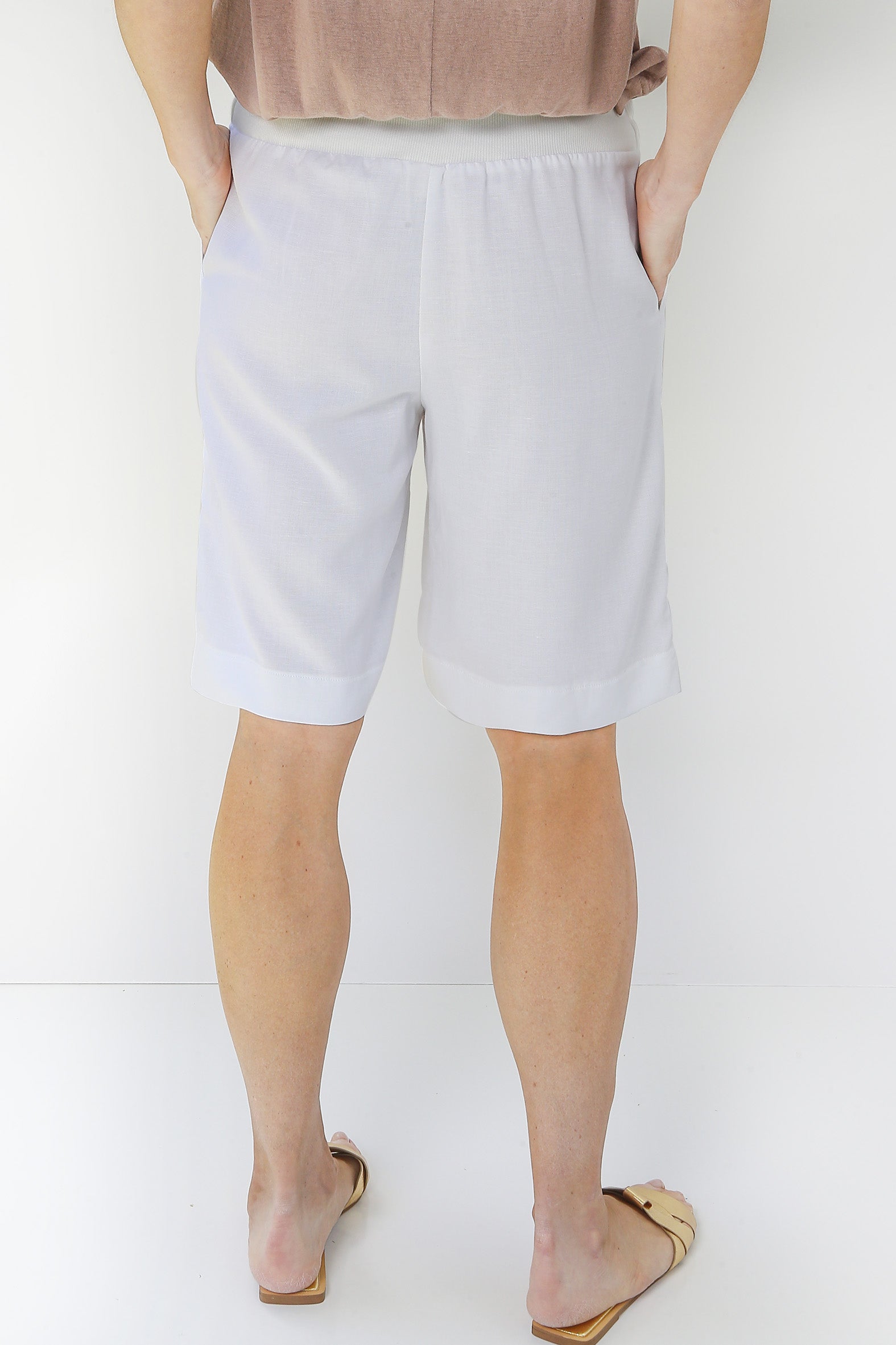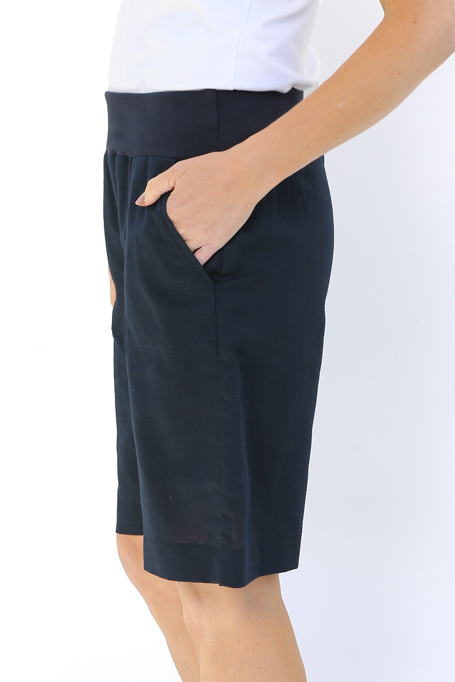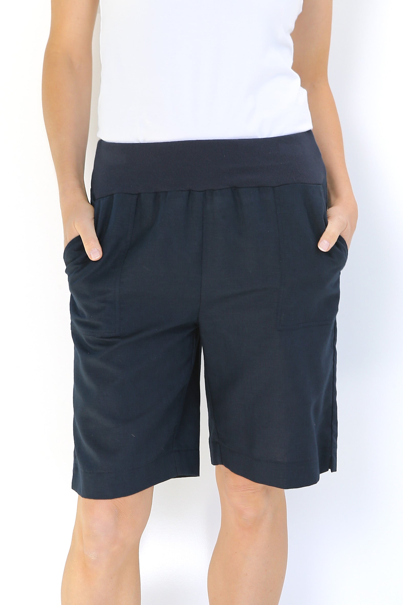 Perfect for hot summer days, these longer length shorts are crafted from a soft rayon/cotton, linen-look blend, offering a comfortable, breathable, relaxed fit with a touch of stretch. The elasticised rib-knit waistband provides a flexible fit while adding laid-back, casual style. With functional hip pockets the shorts are both flattering, easy to wear and versatile making them a must-have wardrobe staple for effortless comfort and everyday wear.