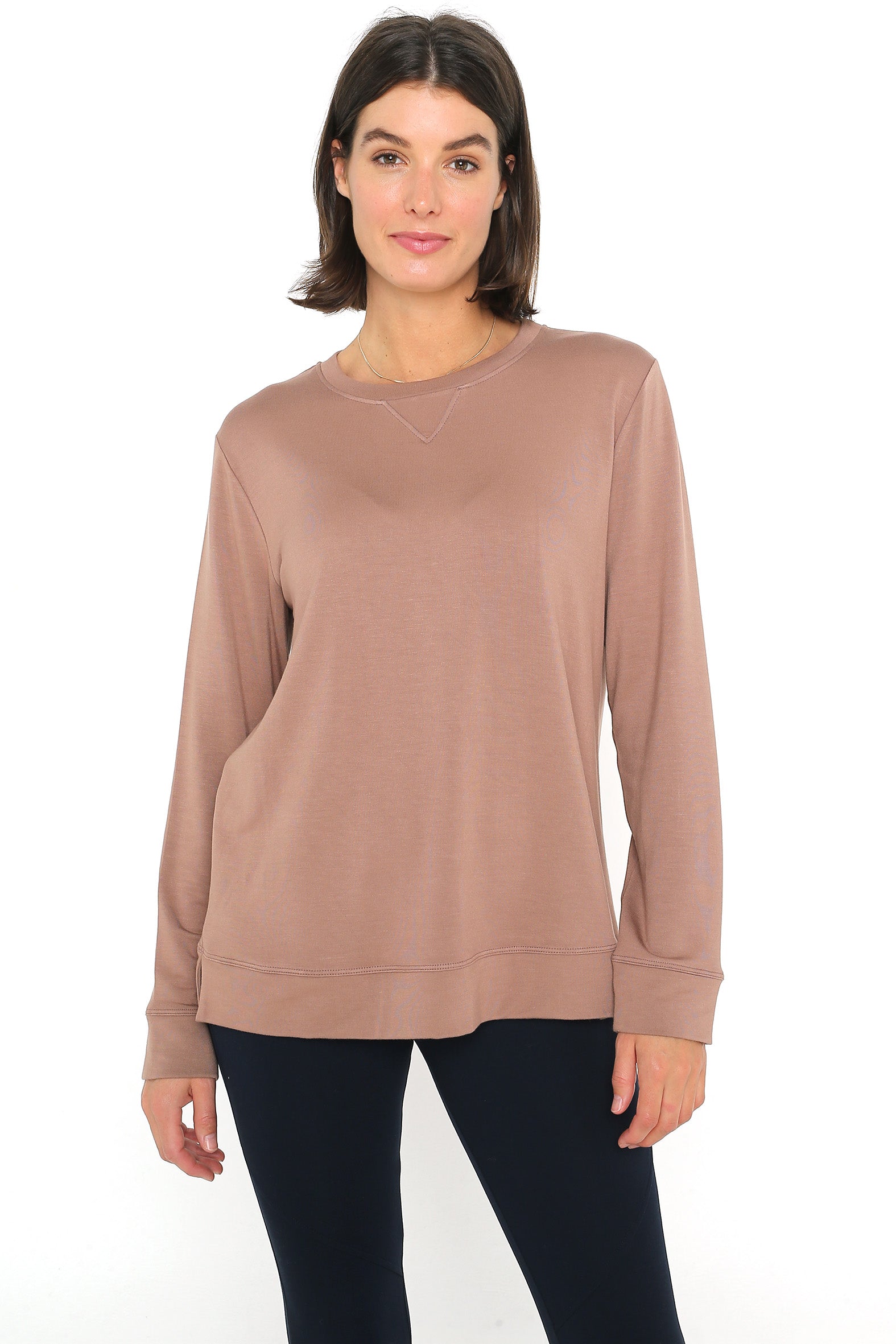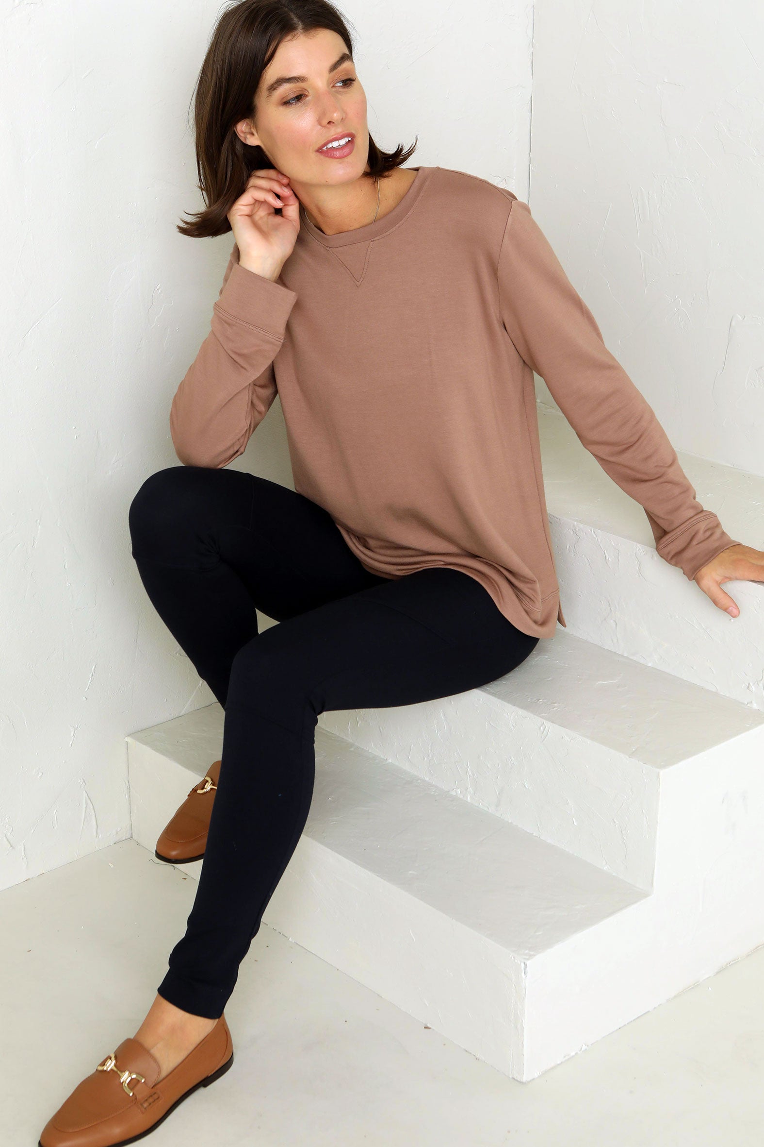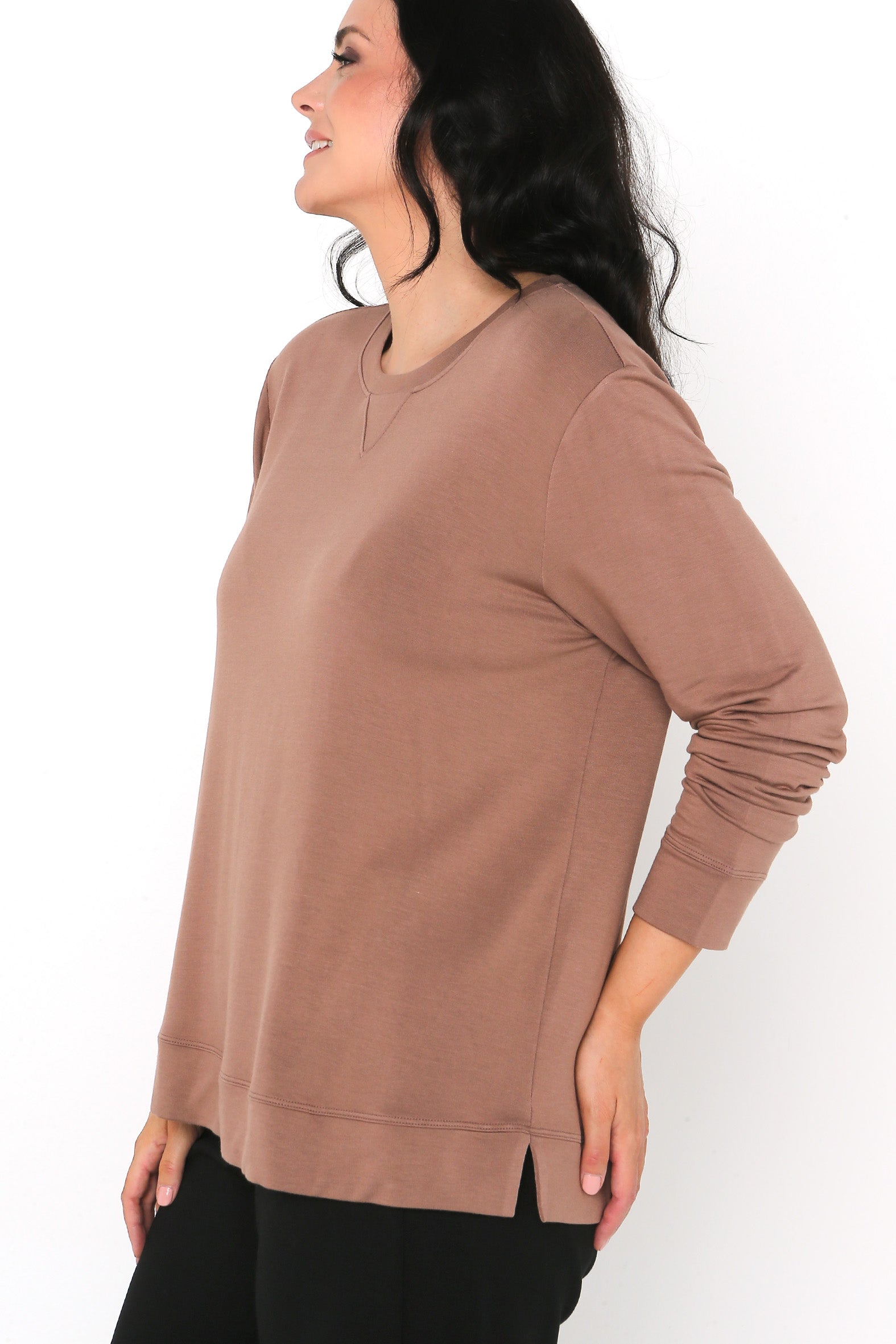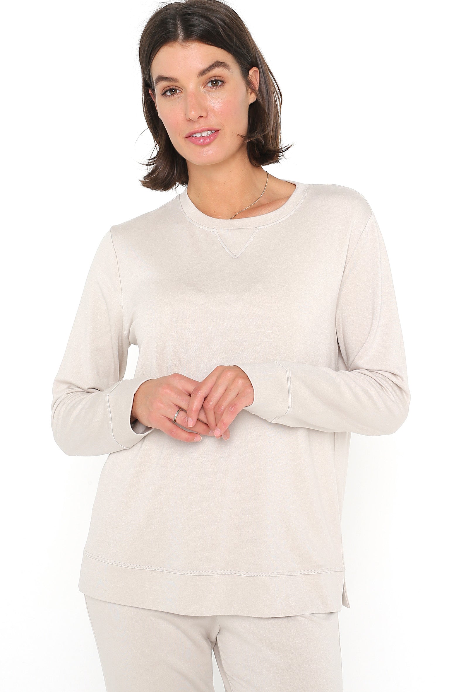 Perfect for weekend get-aways and cosy nights at home you will instantly fall in love with our soft, breathable, easy to wear Super Soft sweat. Made from rayon/elastane single jersey knit, brushed on the inside to provide cosy comfort and light weight warmth it is the perfect combination of casual and sleek relaxed style. Pair it with the Super soft joggers in matching or contrasting colours, or coordinate it with jeans, leggings or casual pants. A versatile must-have piece in your casual wardrobe.