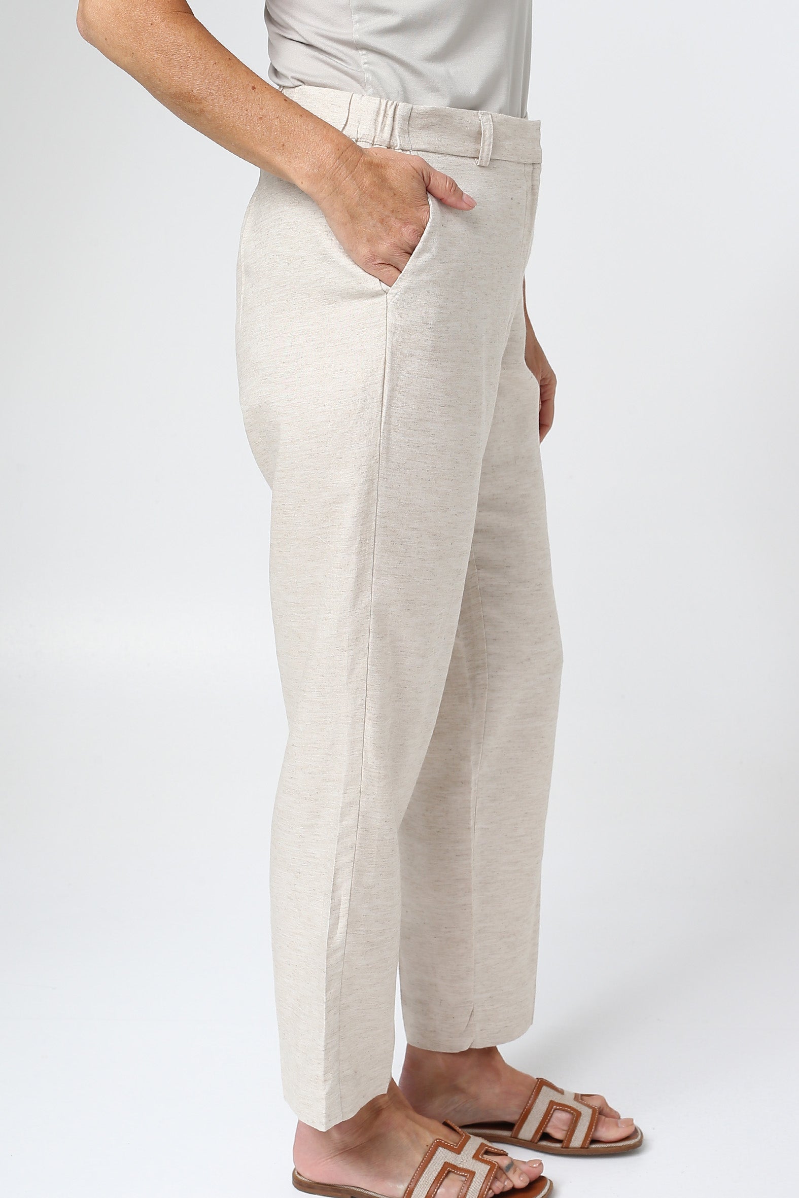 Timeless and tailored, these pants are your go-to for polished comfort from workdays to smart casual outings. Crafted from a linen/rayon blend, they offer lightweight breathability with a softly elegant drape. The tapered leg creates a sleek silhouette, while thoughtful design details ensure ease and versatility. Pair with the Amalfi Jacket for a coordinated look or mix with your favourite tops and blouses.