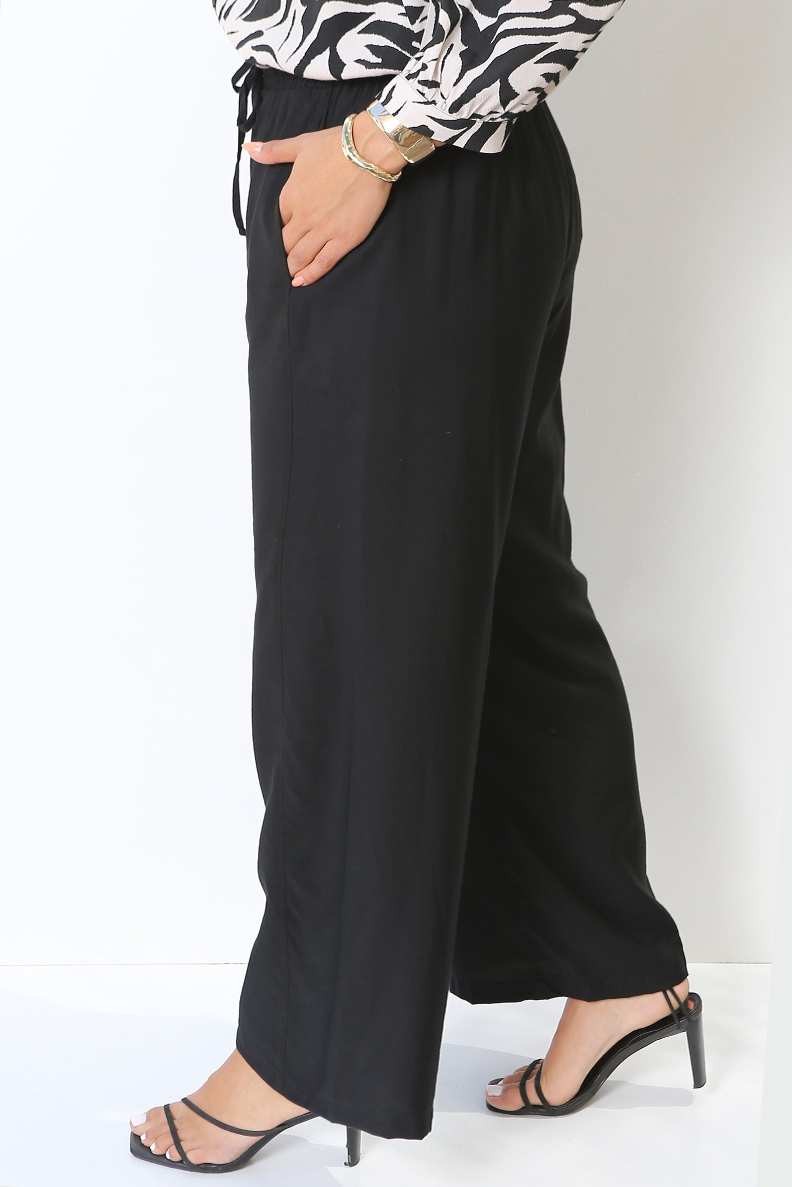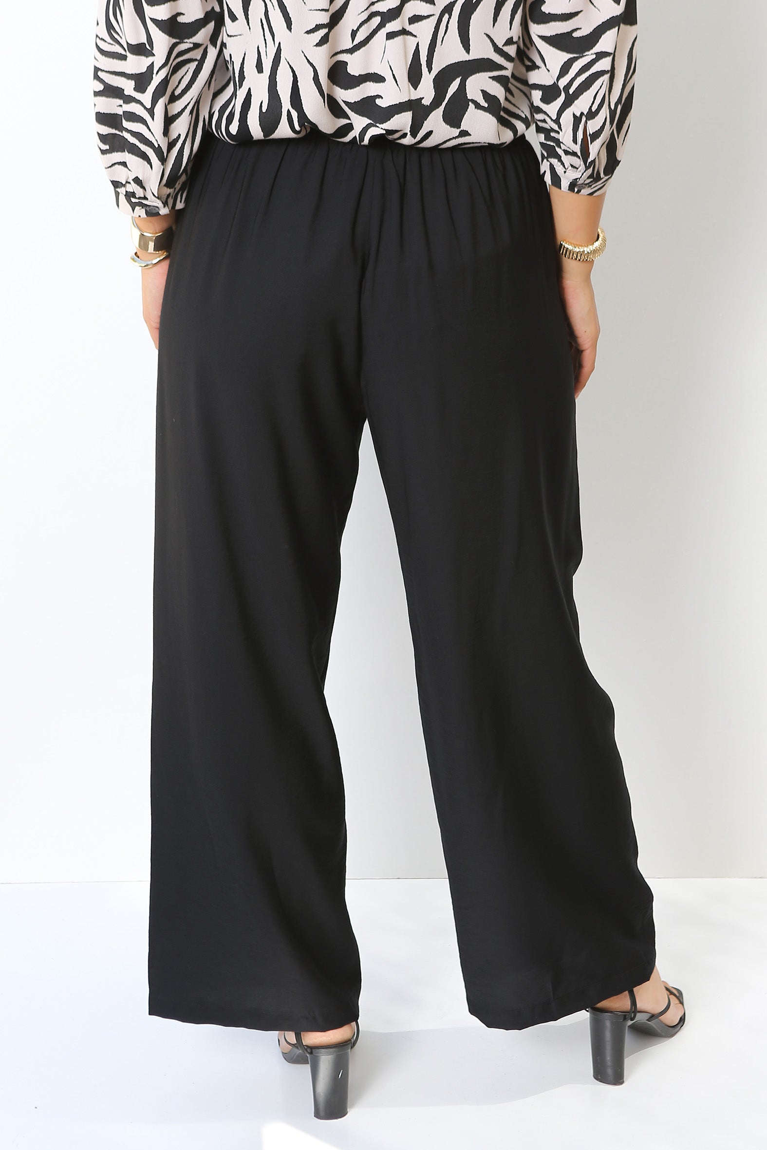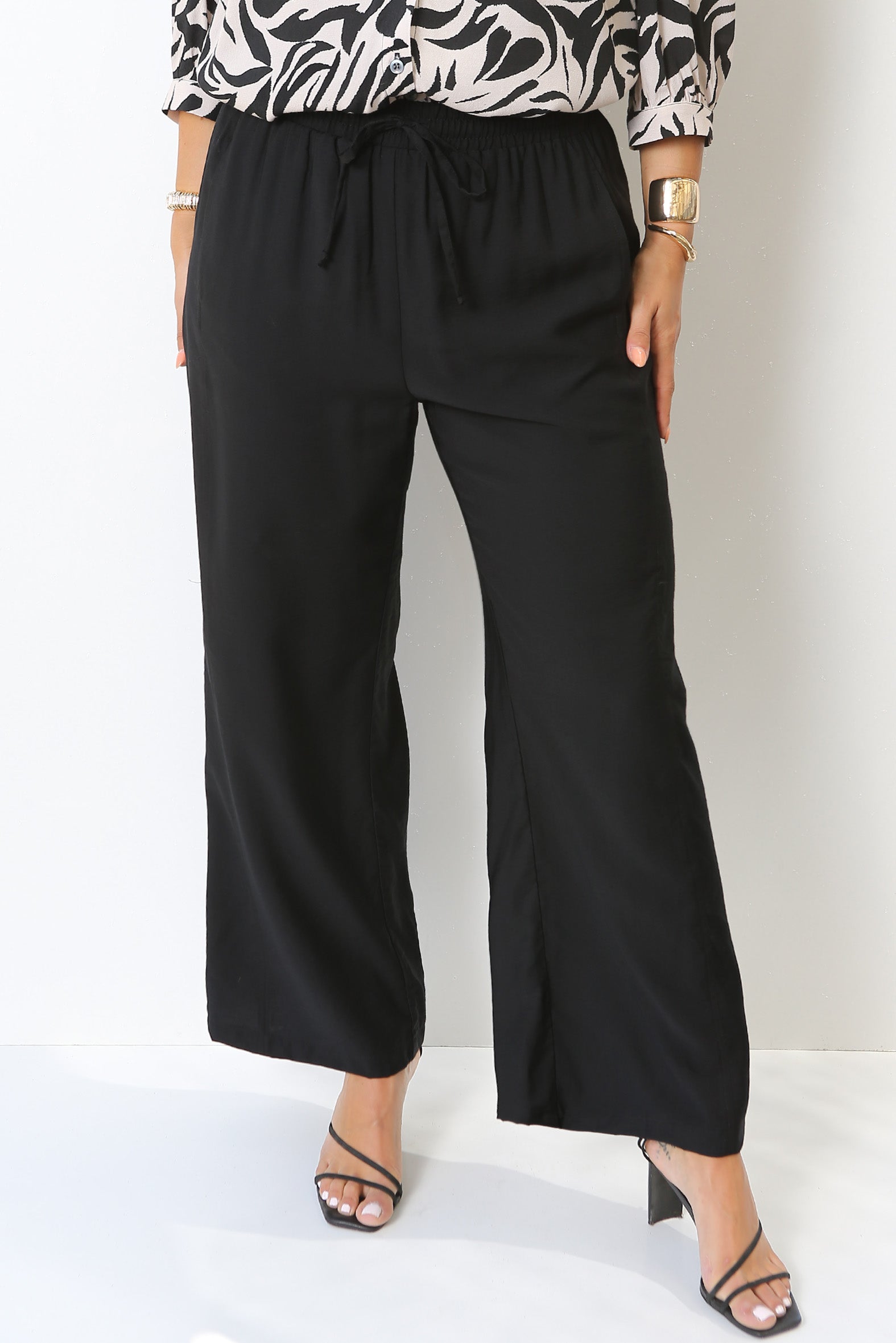 - Softly draping wide leg pants