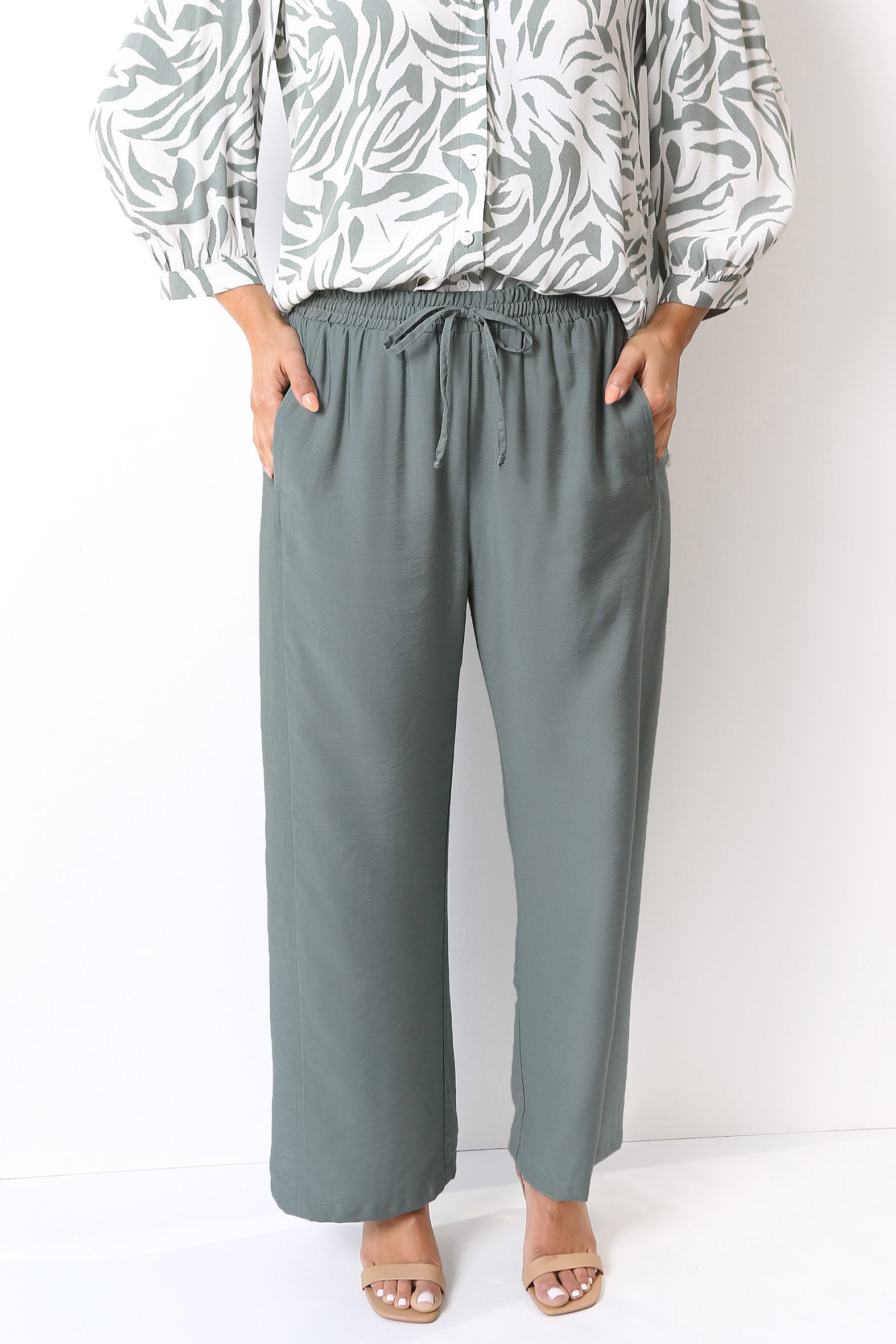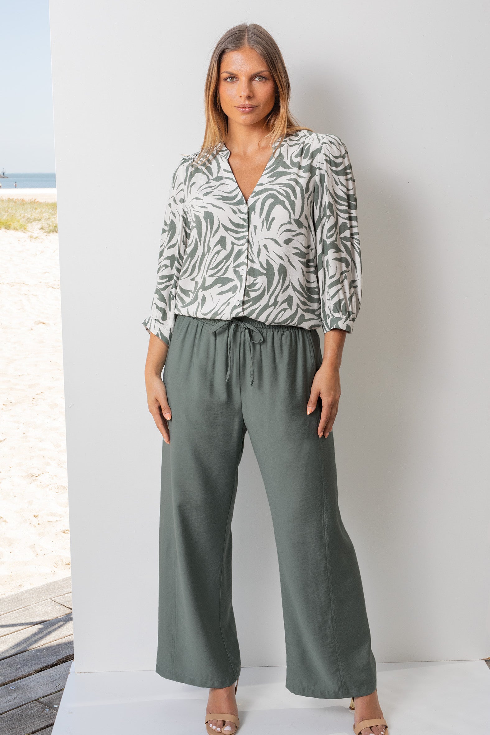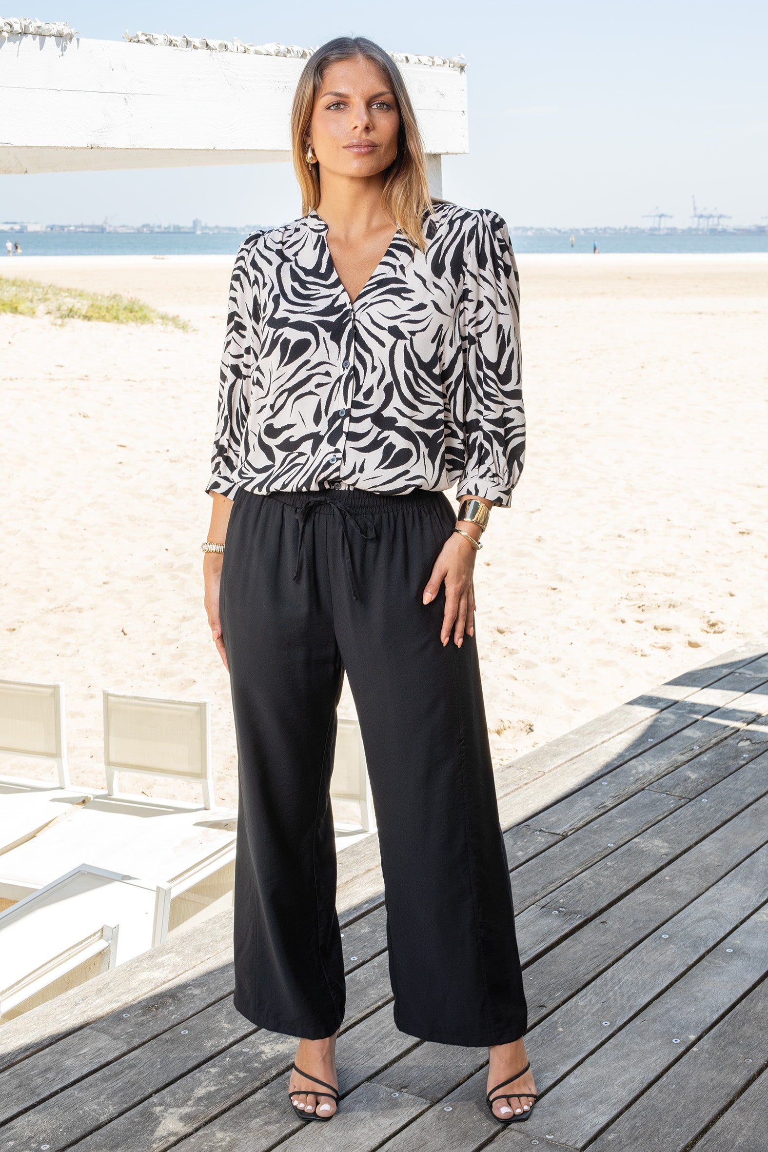 - Softly draping wide leg pants
