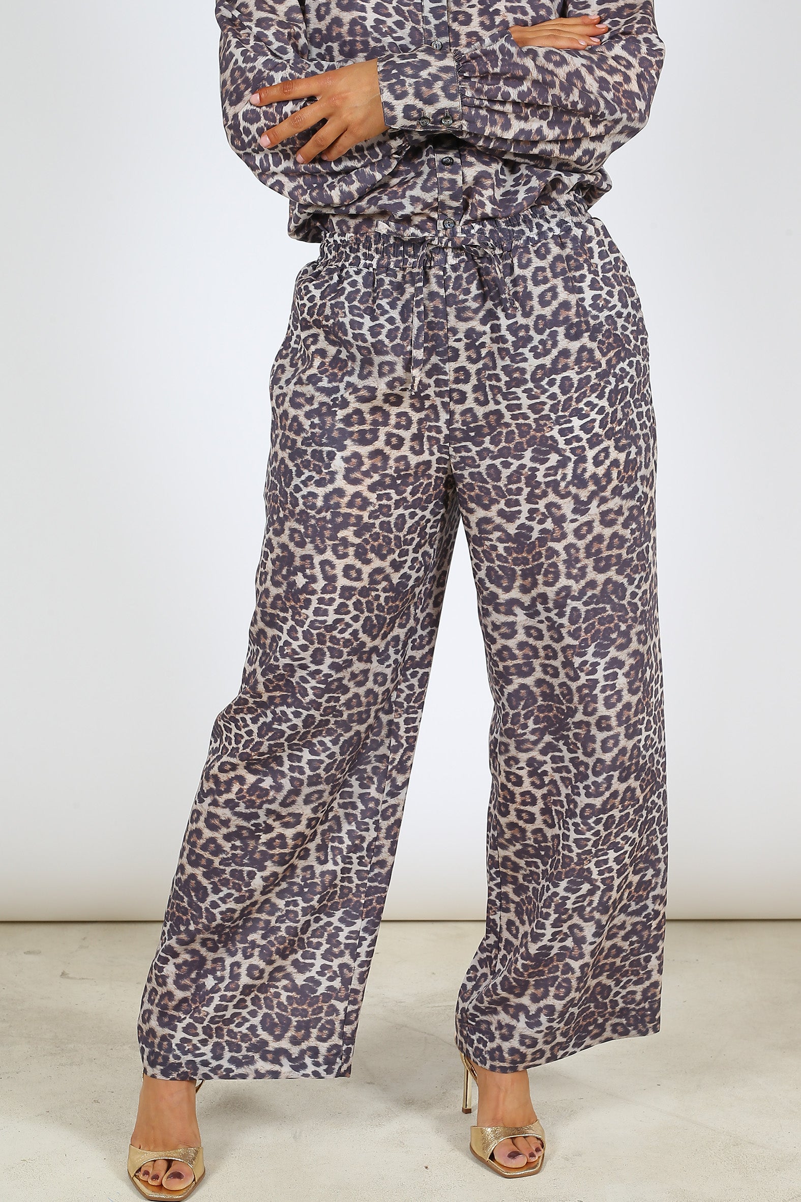 Softly draping wide leg plants crafted from a soft, silky woven blend of Lyocell and linen printed with an easy to style animal design. Featuring a fully elasticised waist band with functional draw cord, allowing for a customised comfortable fit, the pants have a sleek, flattering silhouette that drapes effortlessly over the body. Pair with the Desert Mist Shirt as a matching set for elevated day to night dressing, or style it with the Eco Essential Rib tank and a denim jacket for more a more casual look.
