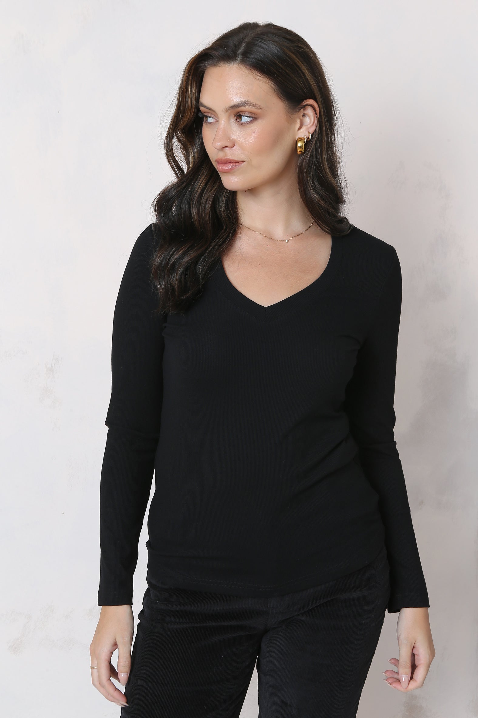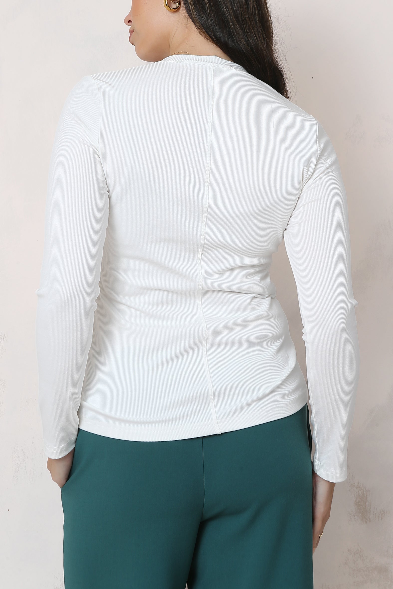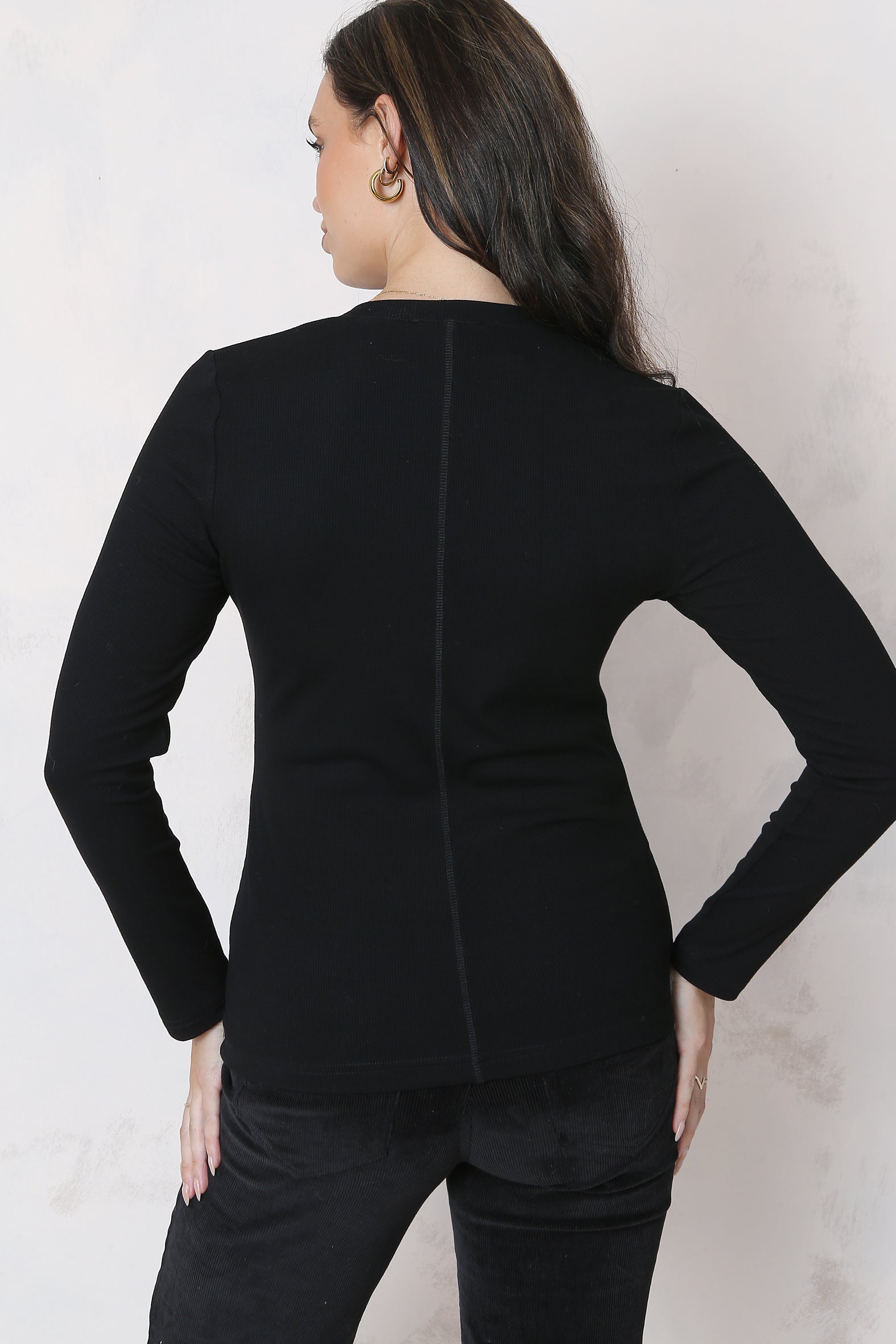 A versatile and effortless layer, this fine rib, long sleeve top is crafted from a blend of EcoVero/rayon and spandex. The rib texture adds stylish, subtle touch creating the perfect piece for layering or wearing solo. An essential staple for any season, combining sustainable fashion with timeless design, it ensures both comfort and elegance whether dressed up with a blazer or kept casual with jeans.