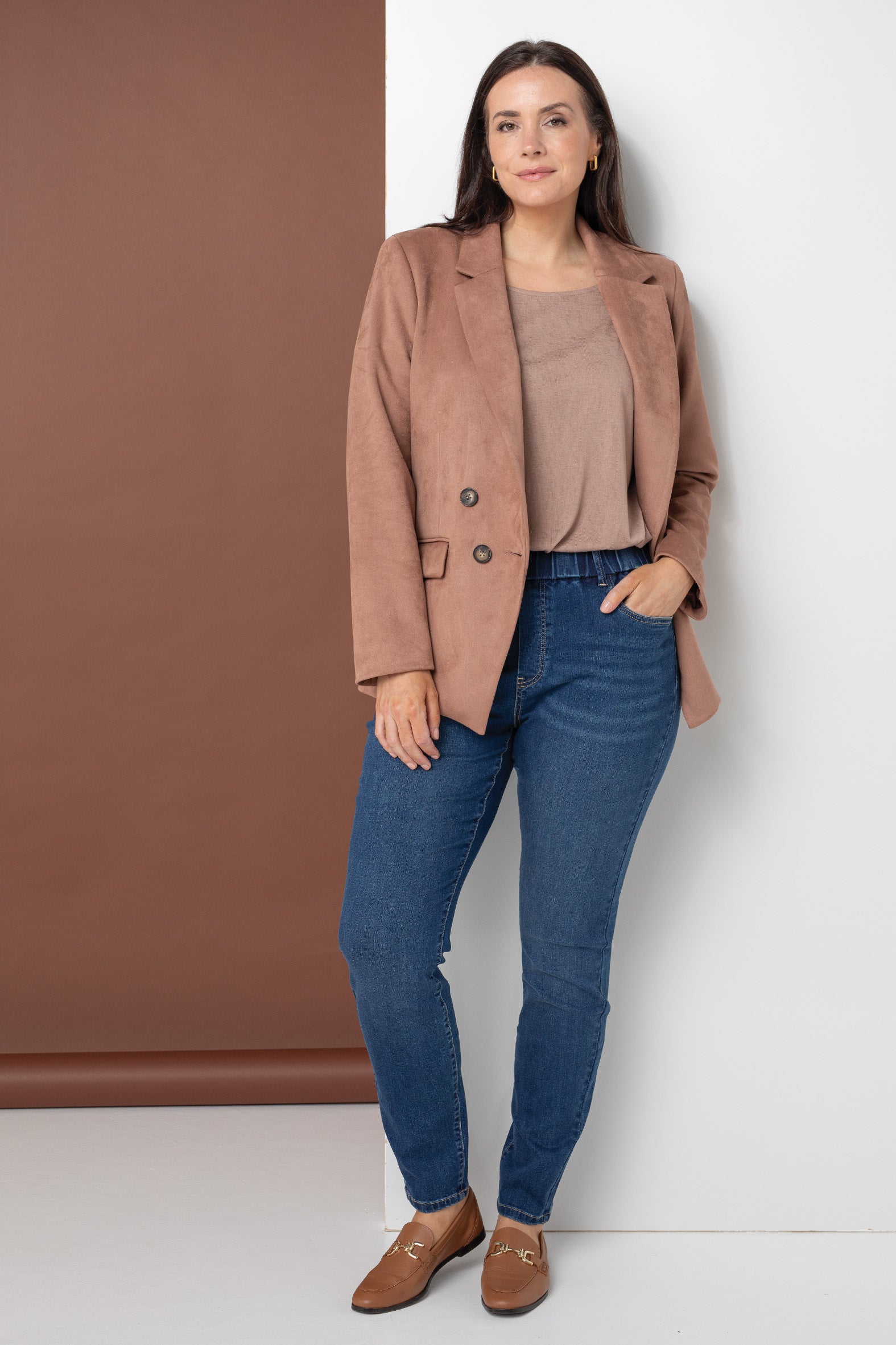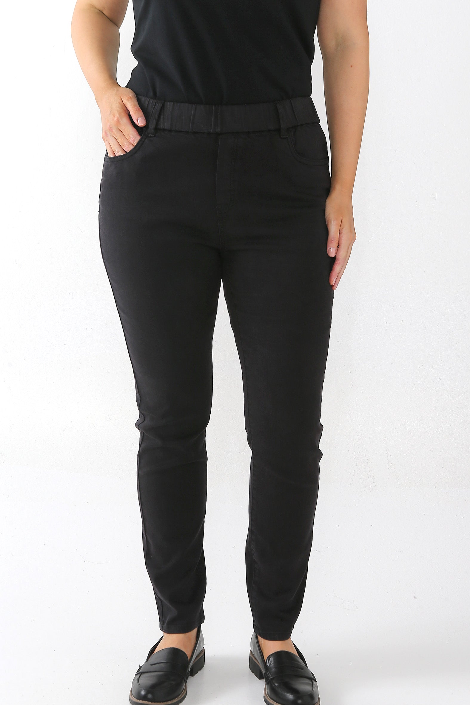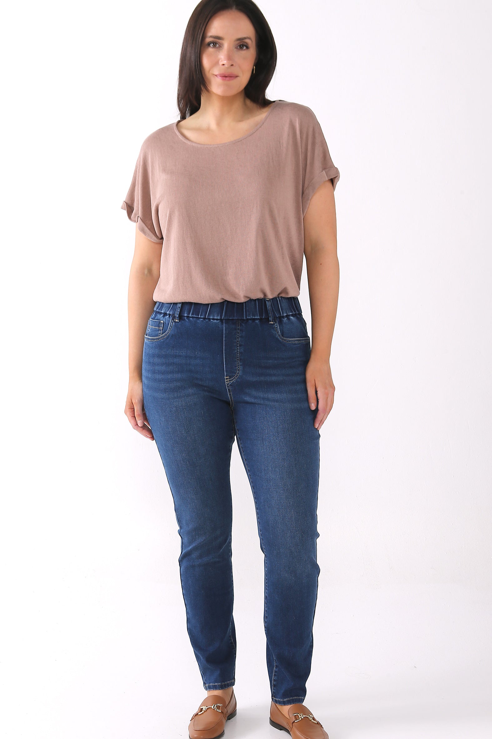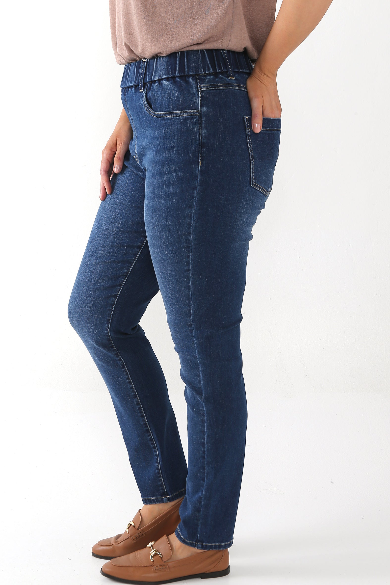Step into smart/casual style with these flattering slim-leg jeggings. Designed for comfort and versatility, they feature classic denim detailing, added stretch, and a high elasticised waistband for all-day ease.