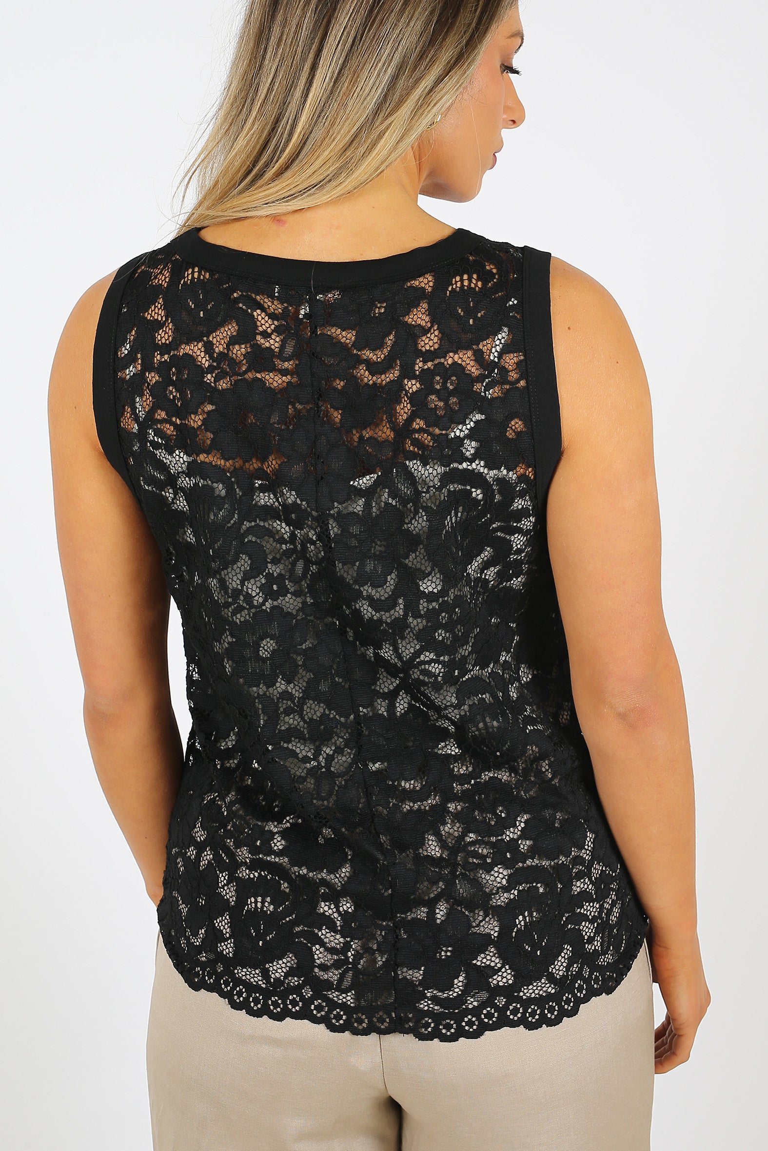 This sleeveless tank is crafted from intricate stretch lace, offering a feminine silhouette with a comfortable, flattering fit. The design features a classic round neckline and armholes, both finished with colour matching bamboo/elastane jersey binding for a soft feel and subtle contrast in texture. A scalloped hemline adds an elegant touch, enhancing the lace’s intricate design and providing a graceful finish to this versatile layering piece. Available in black and a soft shade of blush, this feminine top is guaranteed to uplift your outfit whatever the occasion.