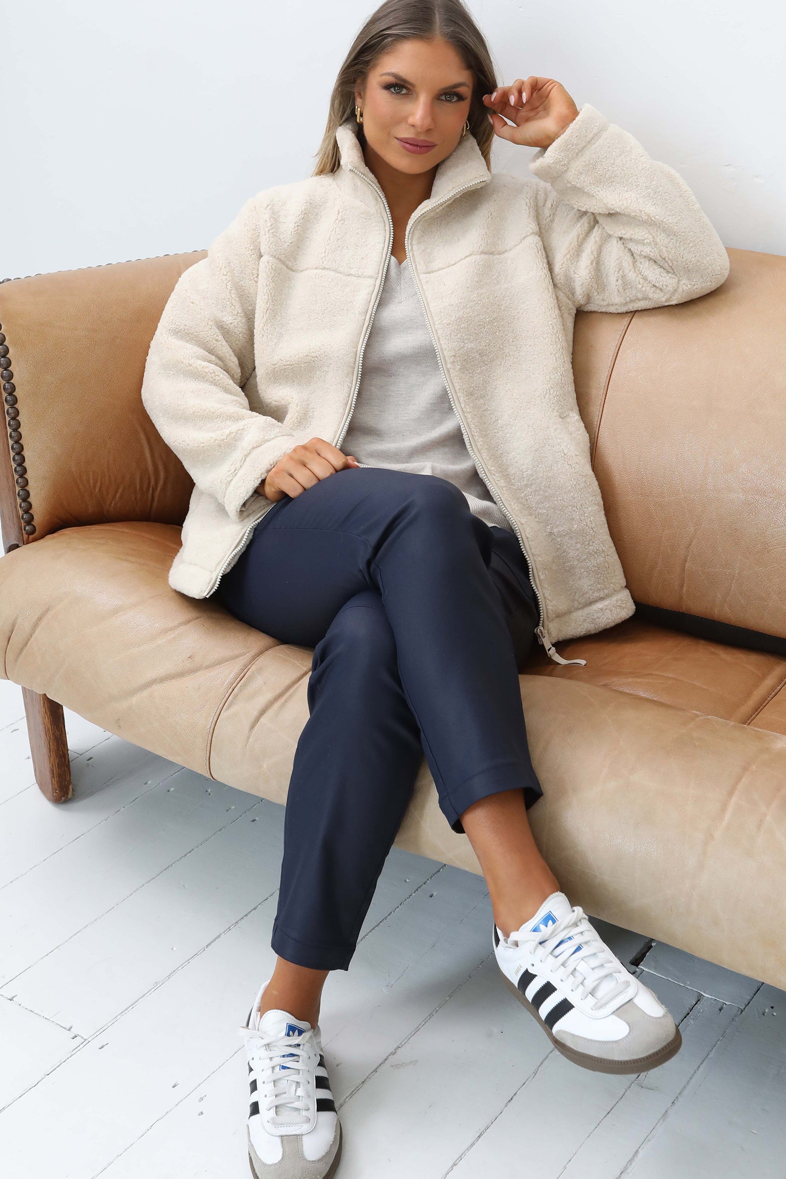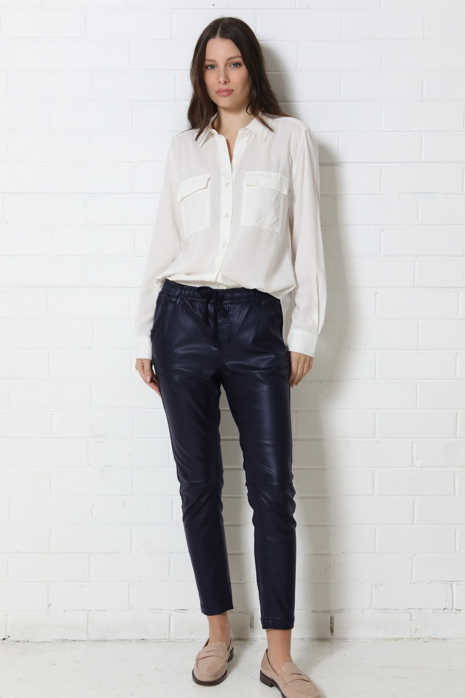 Fall head over heels for the Like a Dream Joggers—crafted from leather-look coated denim with a relaxed fit and elevated styling details. With a tapered ankle-grazer leg and a comfy elasticised waist, they’re the perfect blend of edge and ease.