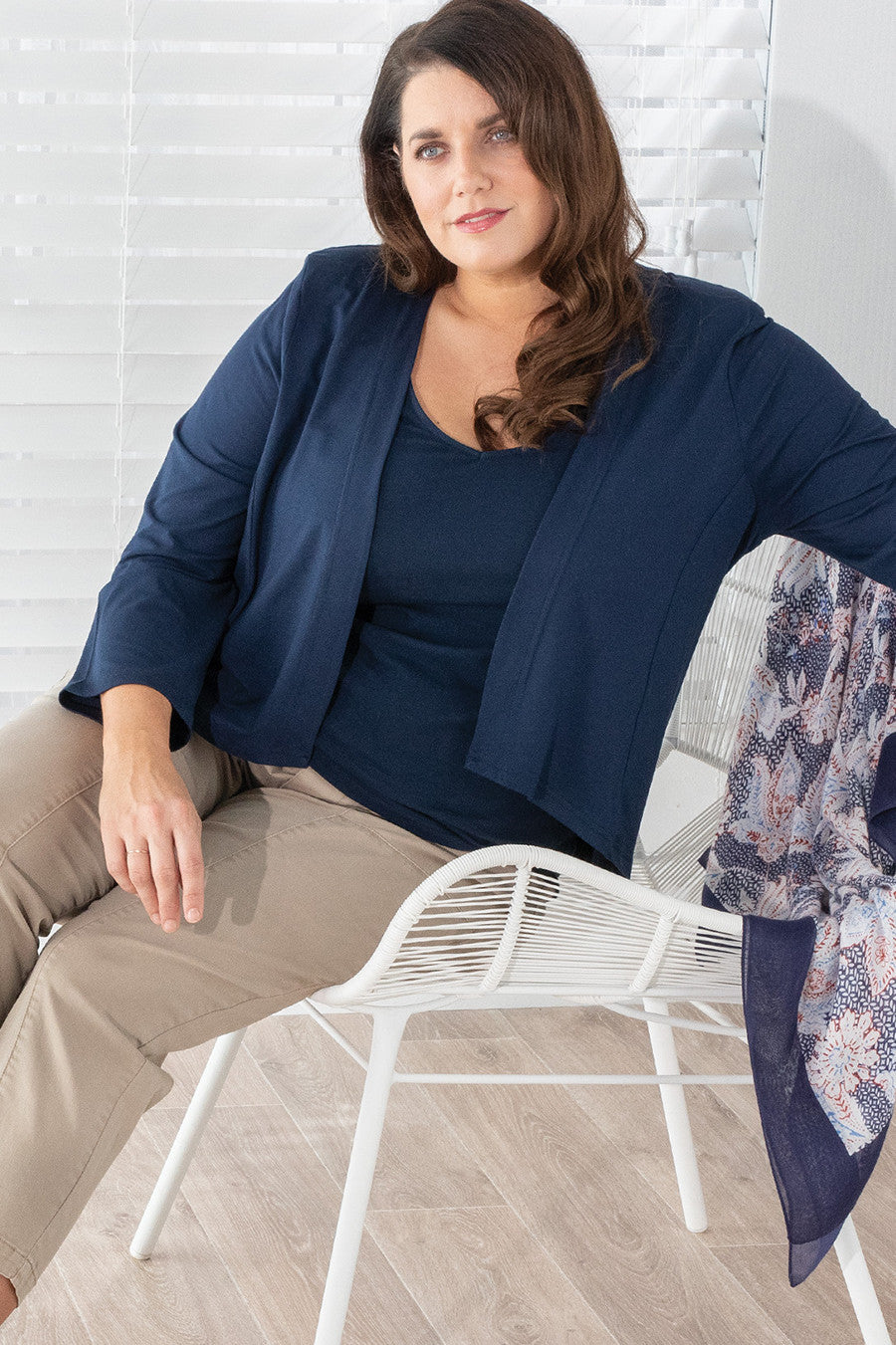 The Mayer cropped cardigan is your go-to layer for effortless style and lightweight comfort. Designed to flatter, it features a longer back hem, three-quarter sleeves, and princess seams for gentle shaping. Made from locally knitted bamboo/elastane jersey, it offers a soft, breathable feel with just the right amount of stretch. Whether you're layering over a dress, cami, or tee, this versatile piece adds polish without the bulk.