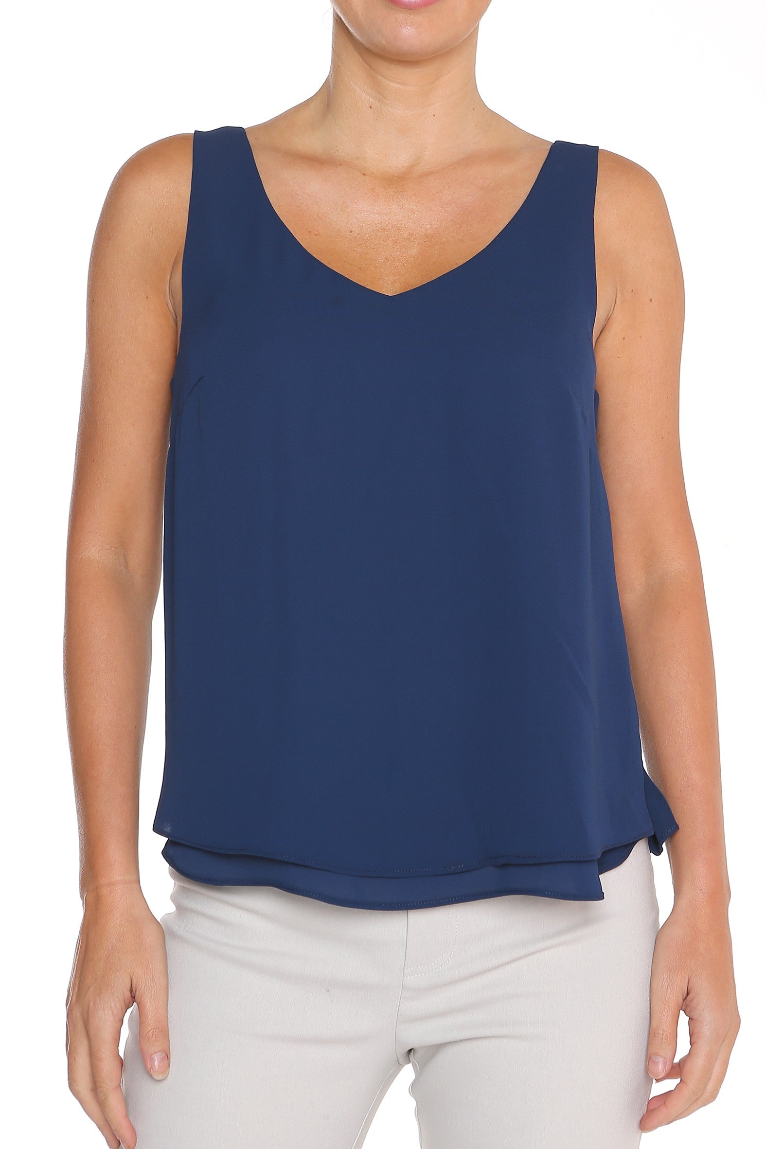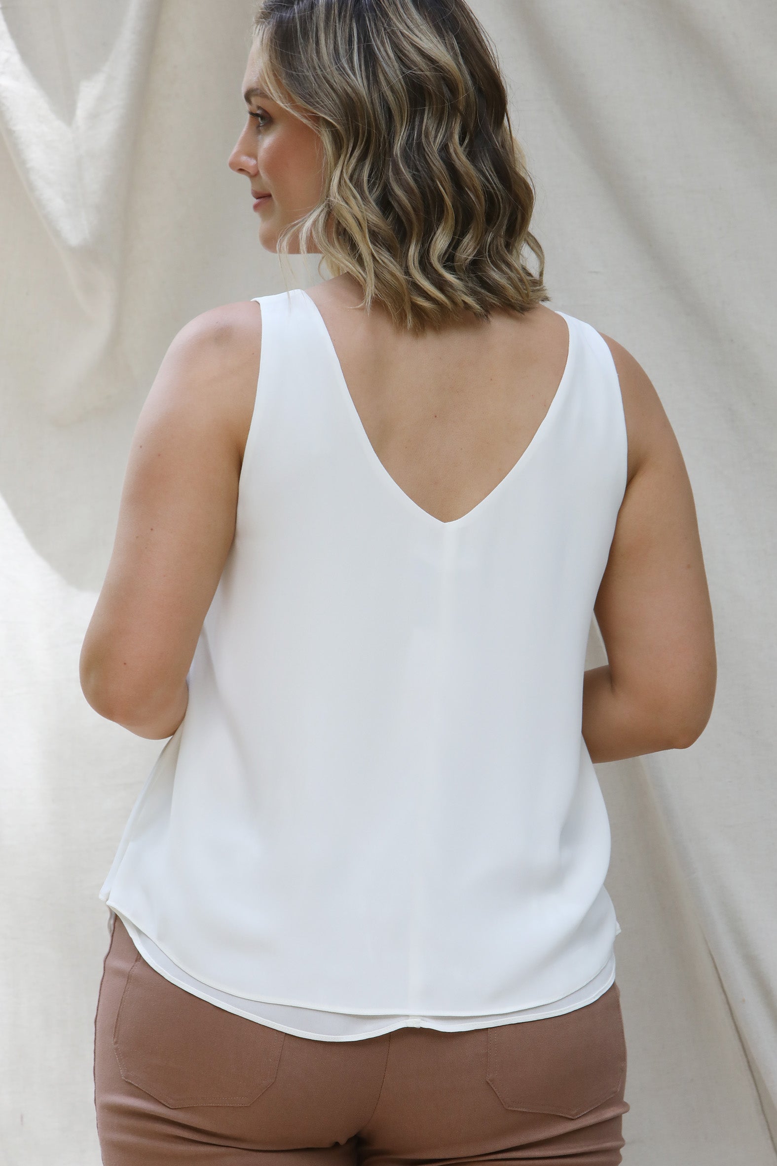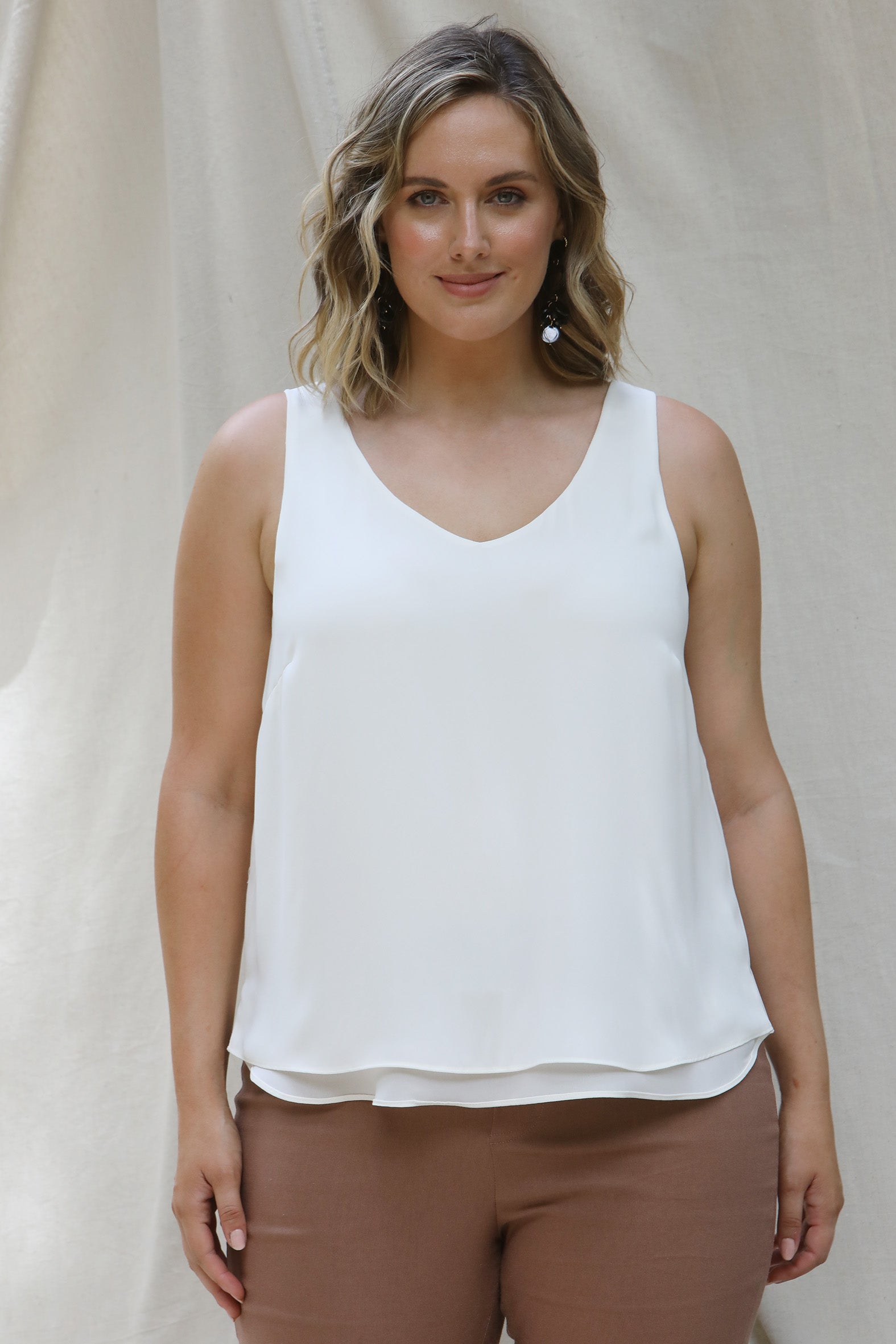 Brighten your day with this flattering, easy-care tank—available in an array of beautiful colours to mix and match throughout your wardrobe. Made from a double layer of our favourite heavyweight polyester double georgette with a washer finish, it’s soft, stylish, and the perfect travel companion.