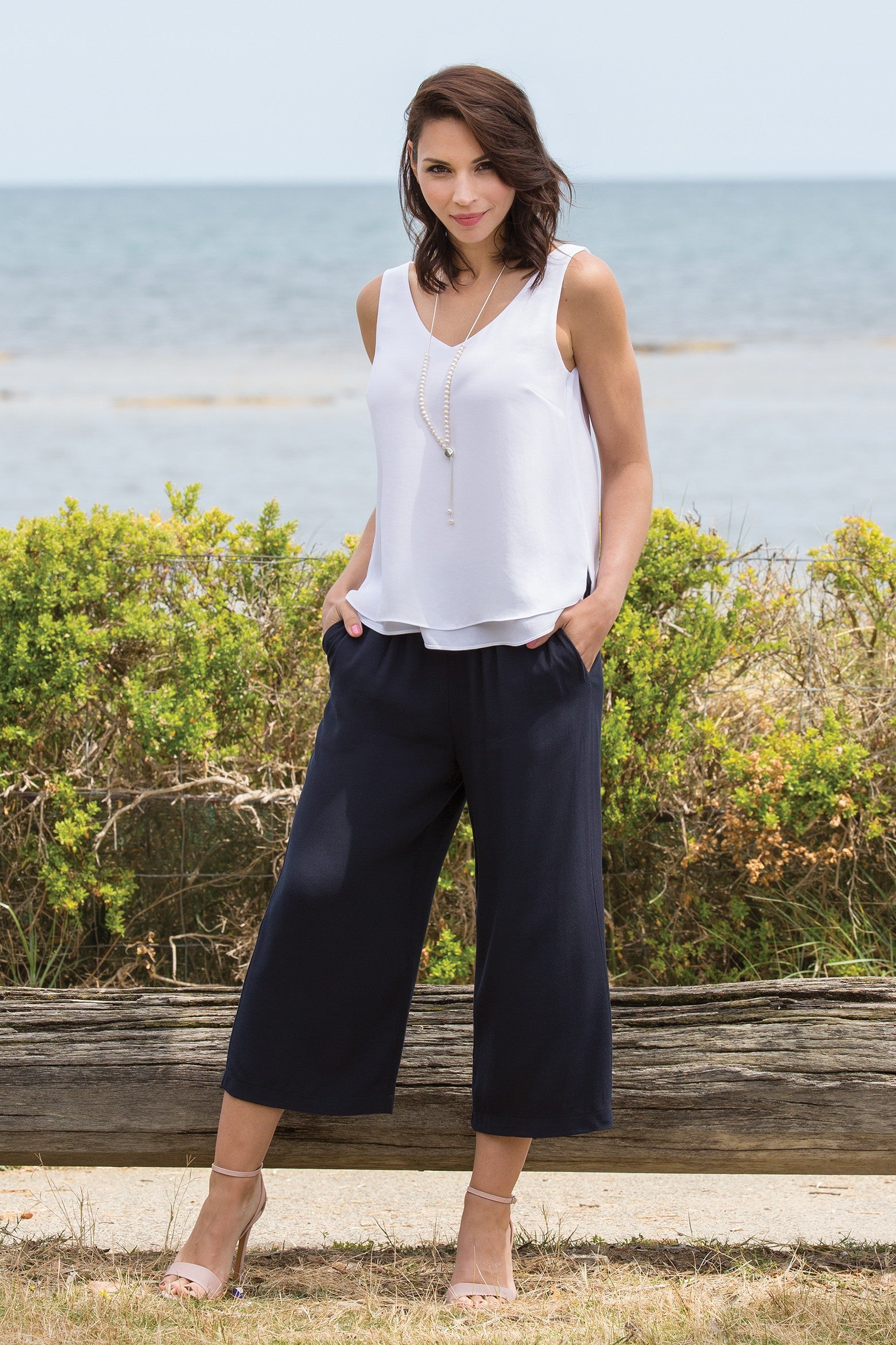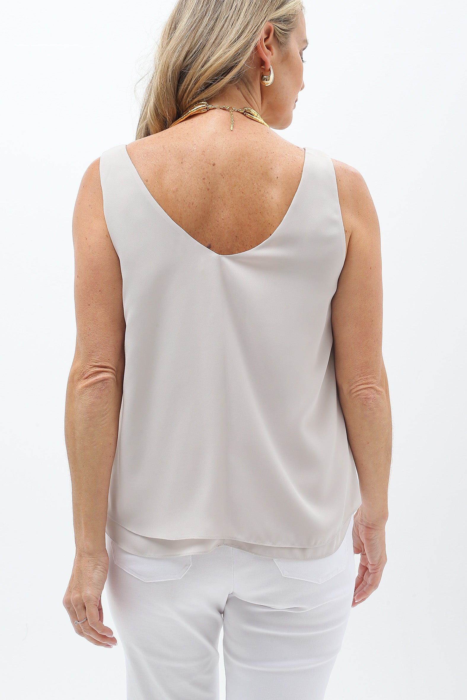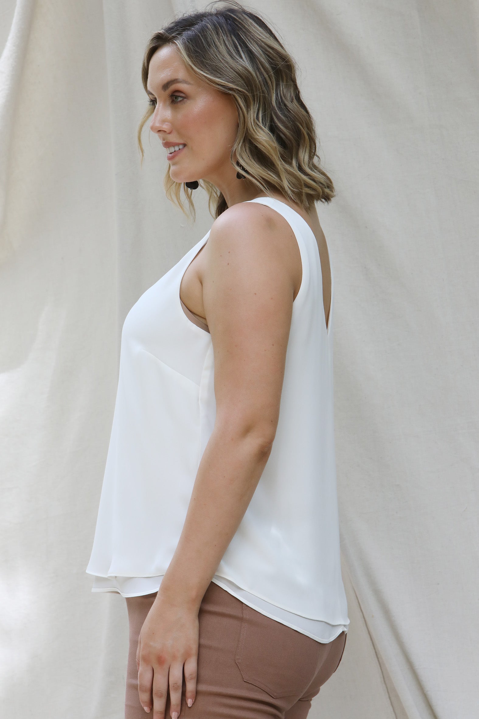 Brighten your day with this flattering, easy-care tank—available in an array of beautiful colours to mix and match throughout your wardrobe. Made from a double layer of our favourite heavyweight polyester double georgette with a washer finish, it’s soft, stylish, and the perfect travel companion.