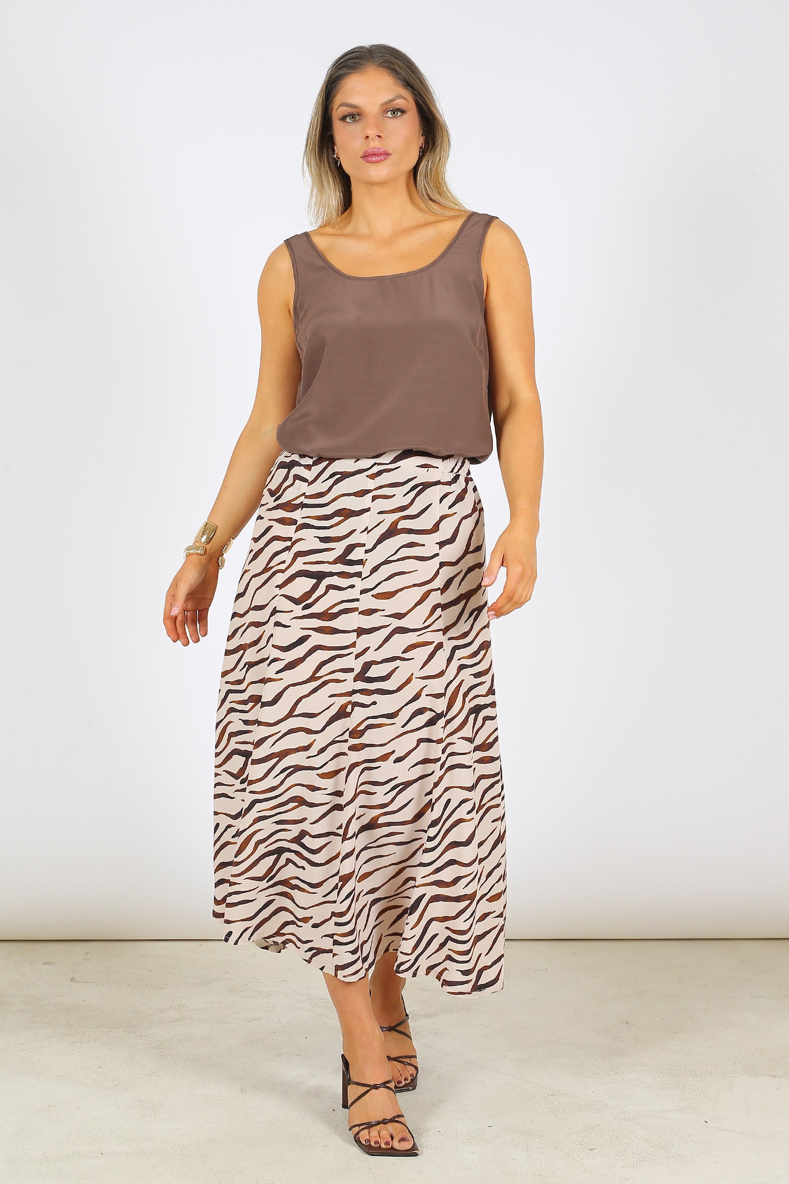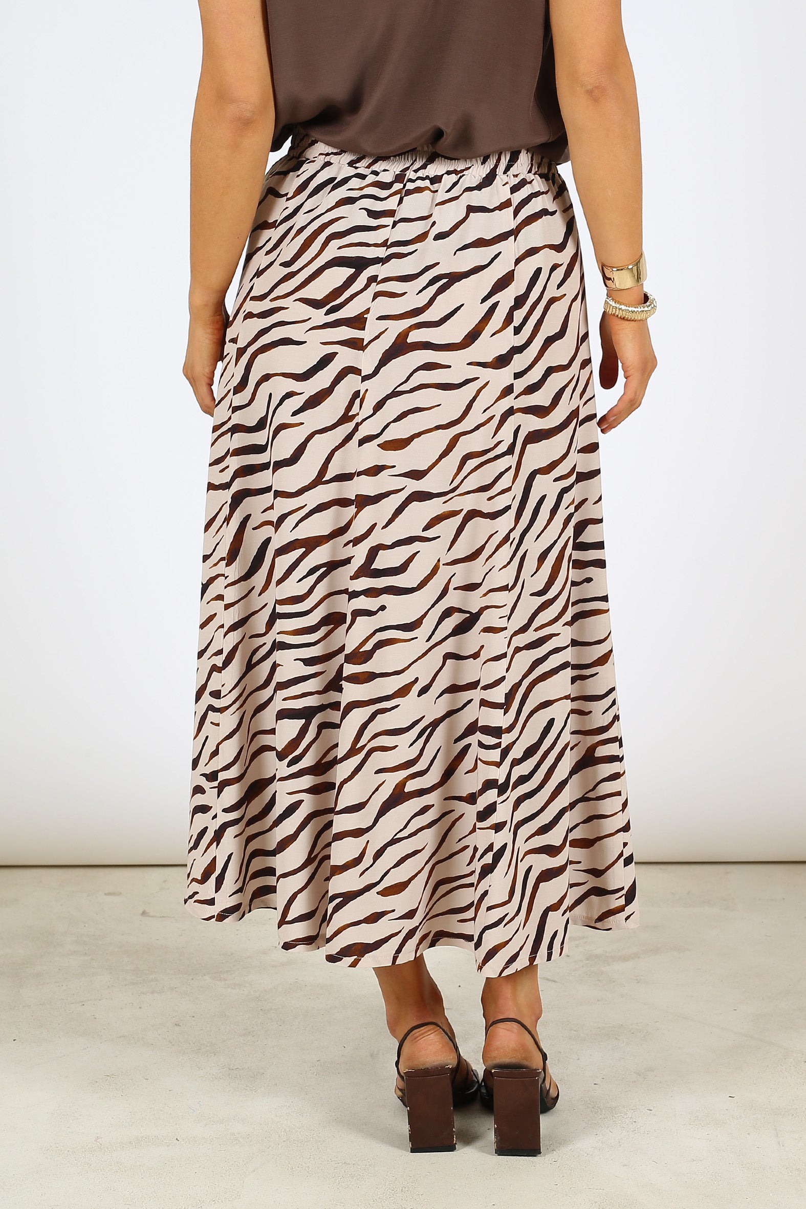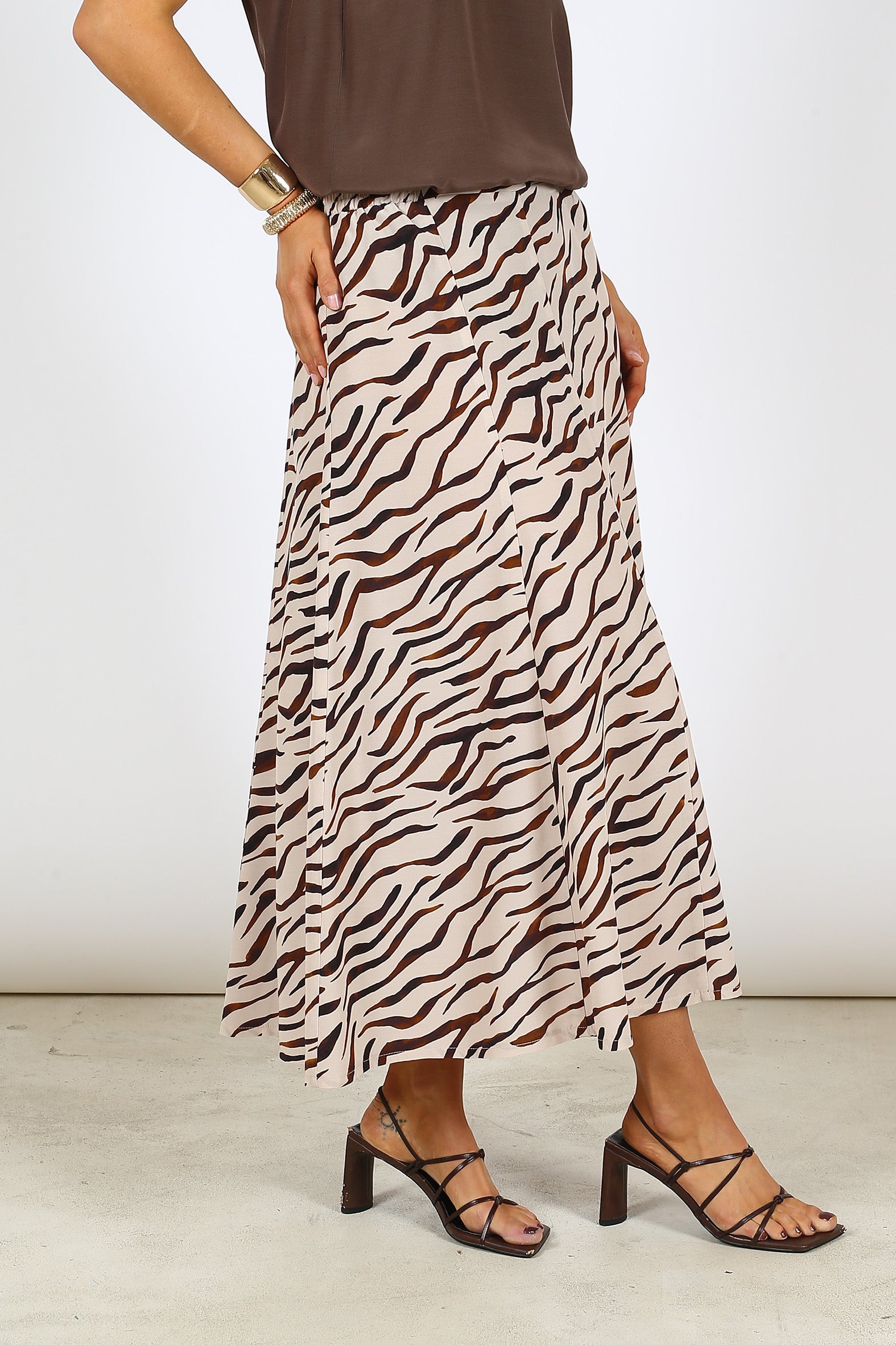 A graceful longer length skirt crafted from sustainable EcoVero rayon featuring an abstract print design in two striking colourways – rich tones of chocolate on a beige background and calming shades of blue against an ivory background. The partially elasticised waistband offers ease and comfort and a clean tailored look. Pair as a matching set with the Mirage Short Sleeve Blouse or coordinate with the Eco Soft tee for a more casual vibe.
