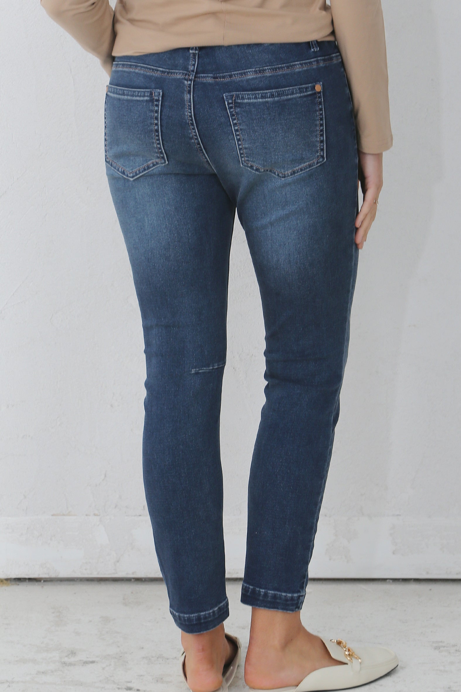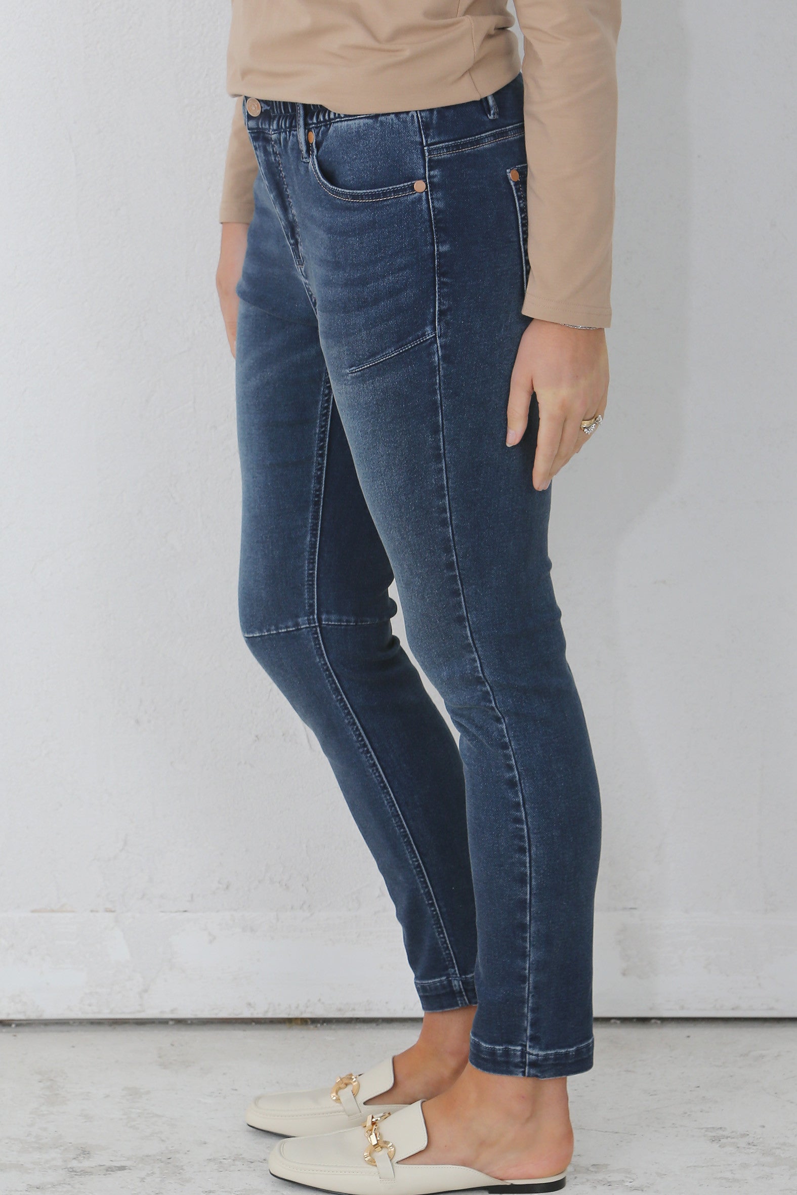 Styled after the fit and style of our favourite At Ease Joggers and made from the same cotton/polyester/elastane knitted denim, you will fall in love with the Weekender Joggers too. As a point of difference we have added a centre front zip/ tack button fastening and regular jeans five pocket detail. The comfort, relaxed fit and considered design details closely emulate our original favourites.