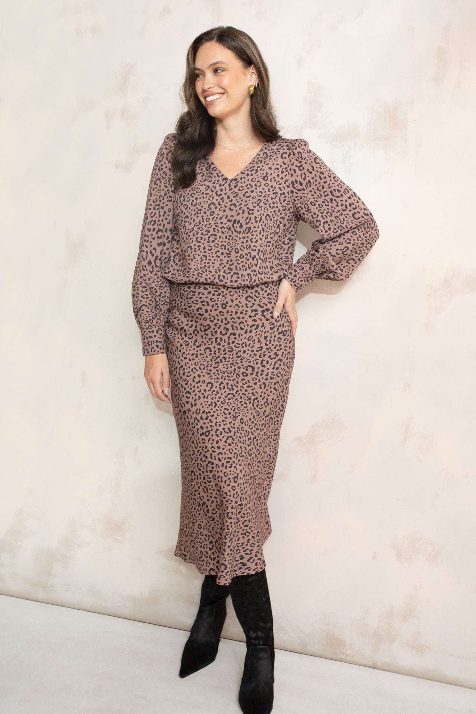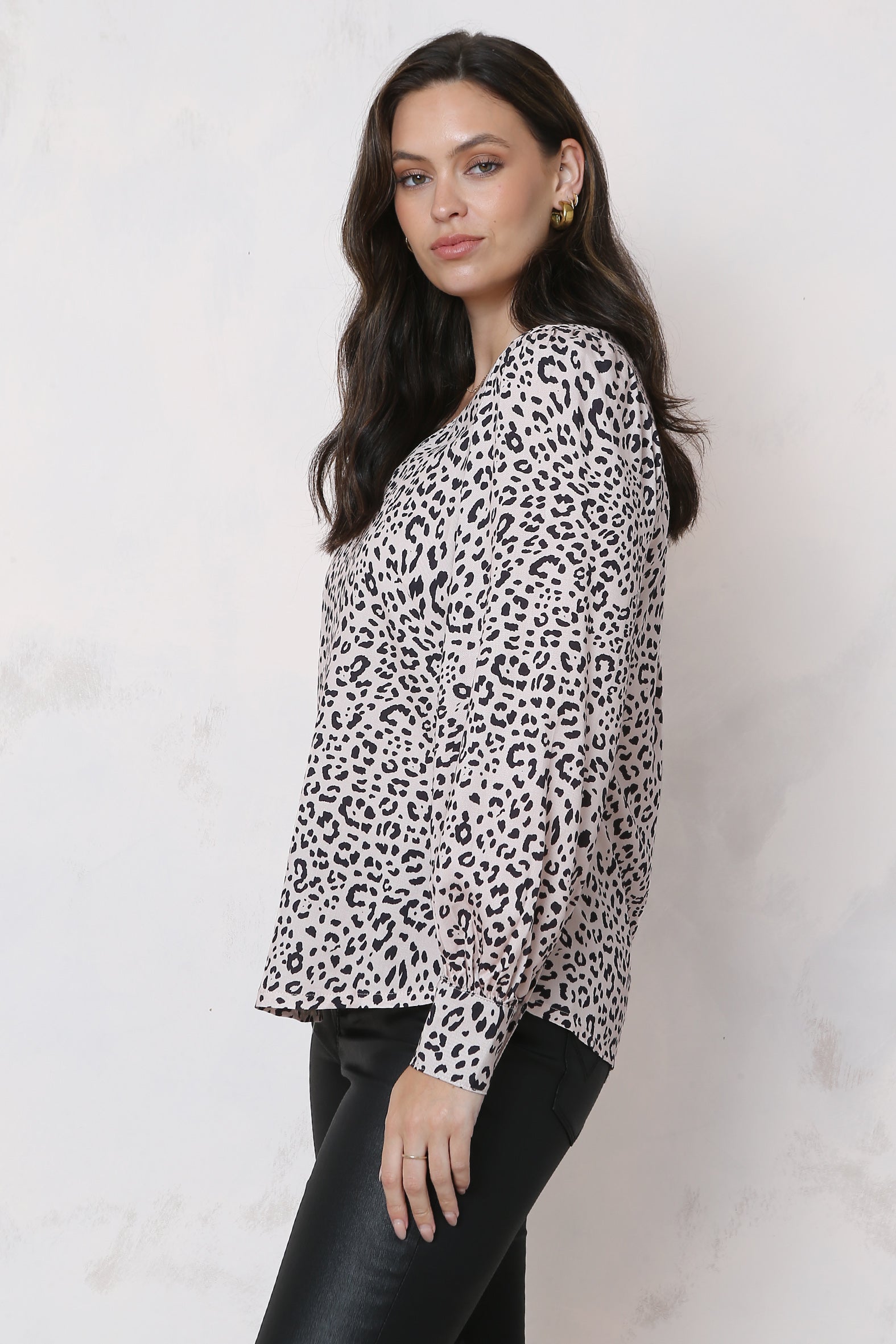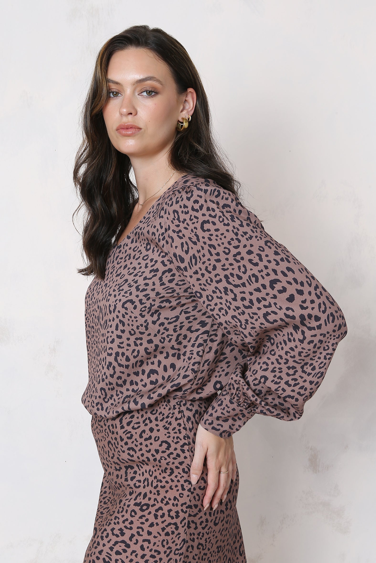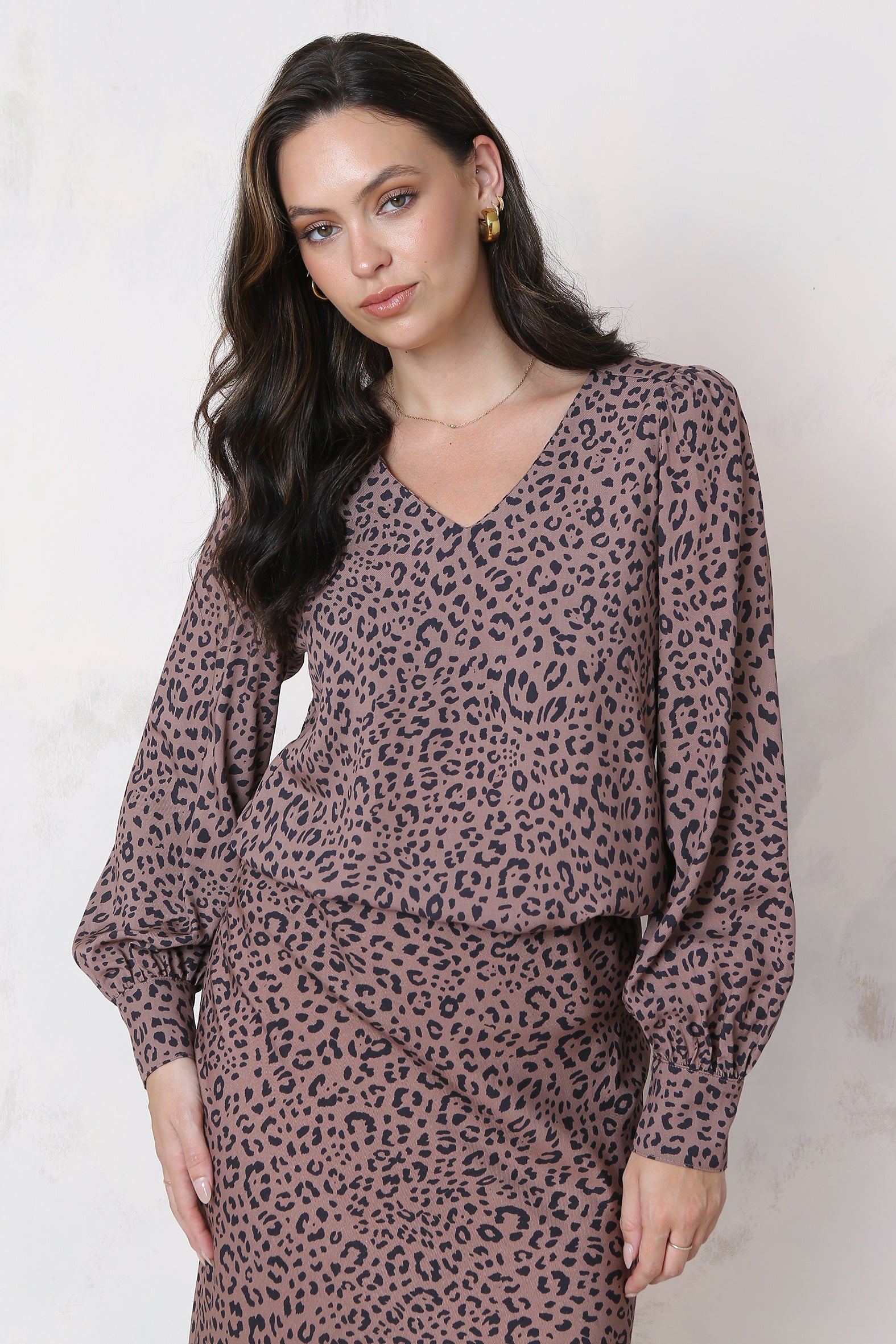 Update your autumn wardrobe with this flattering animal print blouse made from a soft to the touch, comfortable to wear, sustainable blend of rayon and Eco Tencel. Featuring a flattering V shape neckline and long sleeves that gather into tailored cuffs it features a double fabric yoke at the shoulder with soft gathers at the centre back creating a little extra volume and a feminine touch. Designed with an effortless, easy to wear silhouette and a softly curving hemline it is perfect for wearing out or tucking in. Style it as a set with the Vivid slip skirt, coordinate it with pants and jeans, then layer it under a jacket or cardigan.