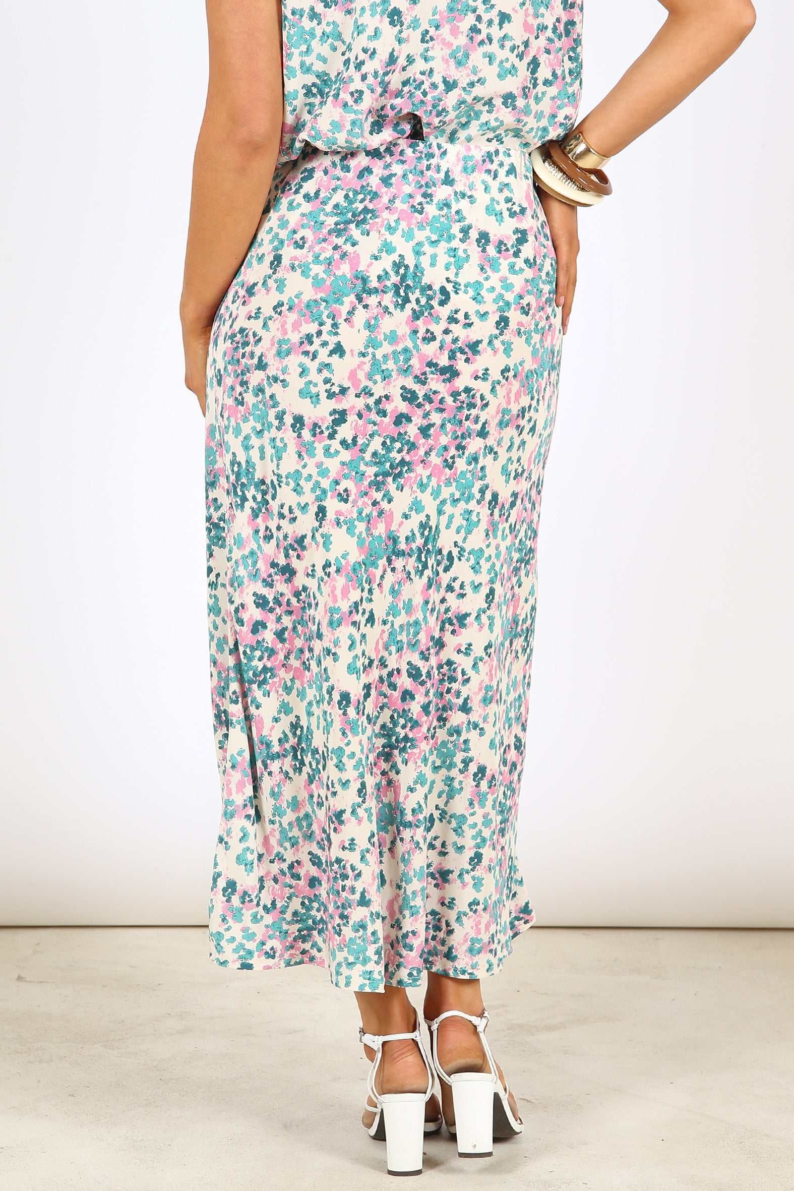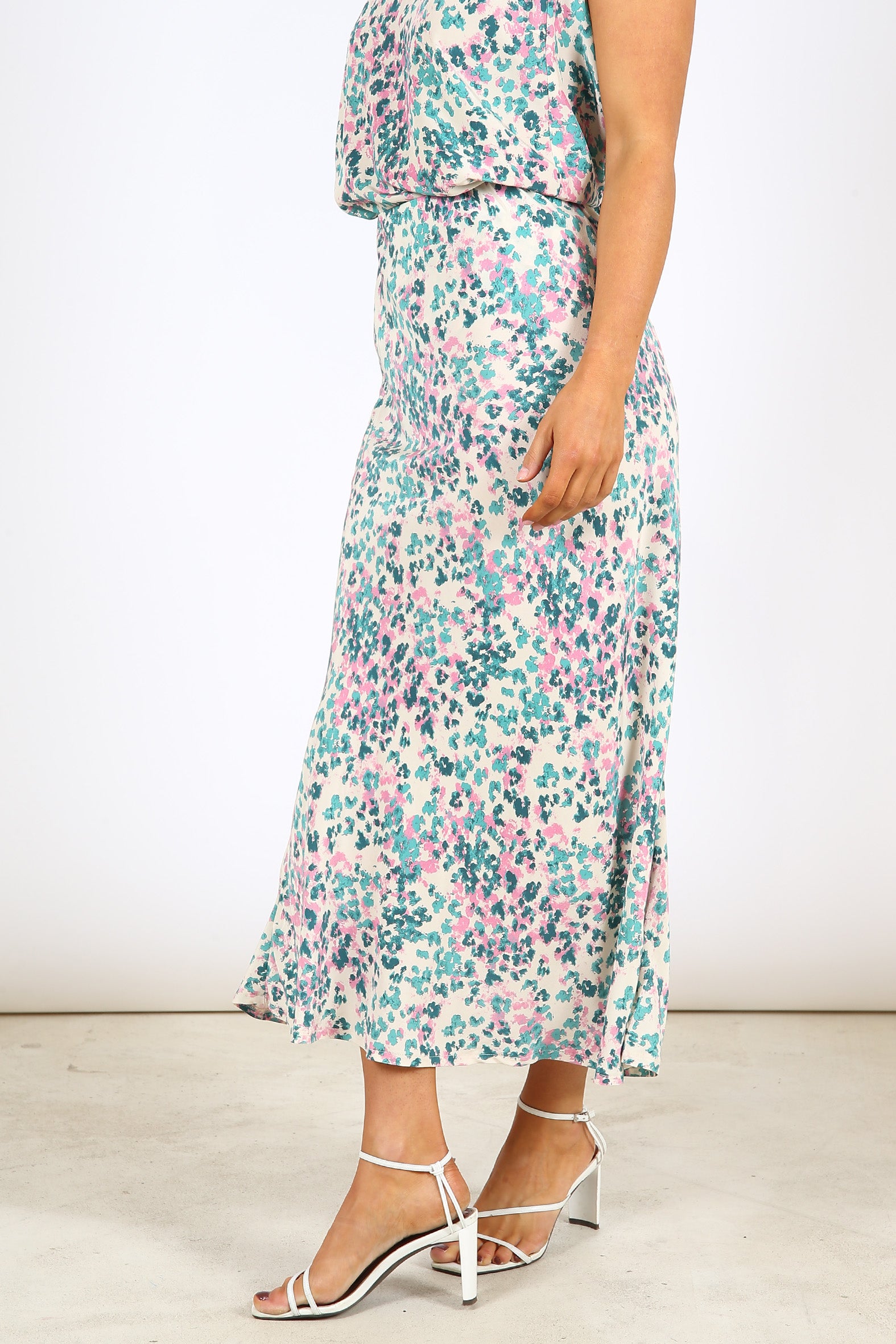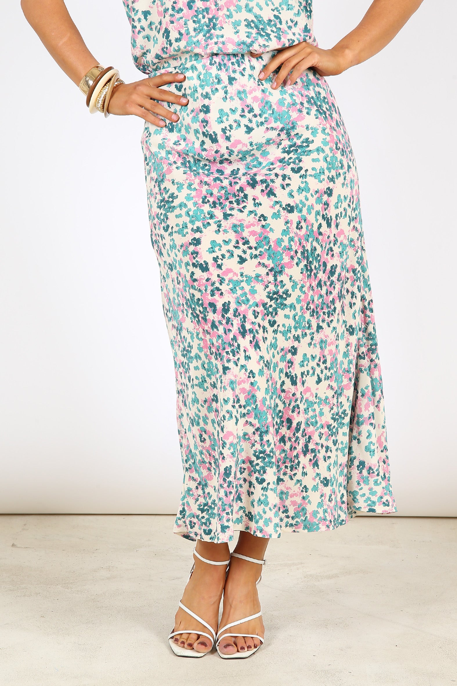 Effortlessly elegant, this bias-cut midi skirt is crafted from soft, silky and sustainable EcoVero rayon offering a fluid drape that moves beautifully with the body. It features a feminine print design in refreshing shades of aqua and pink on a timeless ivory background. Designed with ease and comfort in mind the concealed elasticised waistband provides a smooth pull-on fit while maintaining a sleek silhouette. Pair it with the Willow Tank for a matching set, or coordinate with the Eco Essential Rib Tank in ivory – add a Signature Jacket in Forest Green to complete the look.