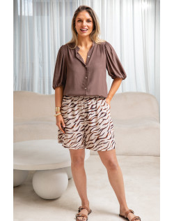 Crafted from softly draping EcoVero rayon these relaxed-fit shorts combine comfort with style. The light weight fabric features an abstract print in rich chocolate tones set against a light beige background. An elasticised waistband ensures an easy flexible fit while discreet side seam pockets add a practical touch while maintaining a clean silhouette. Paired with the Mirage Short Sleeve Blouse as a matching set or the Eco Soft Tee for off-duty cool these shorts offer effortless style with a touch of refined detail.