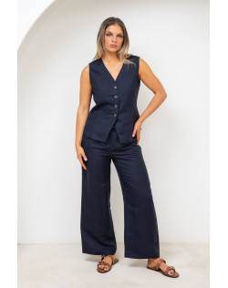 PLEASE NOTE: At the time of photography the white linen pants sample had pockets. The production of the white have mock pockets.