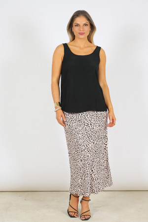 Made from soft and silky plain dyed EcoVero rayon the Lumina sleeveless tank is perfect for wearing out, tucking in and layering under jackets and cardigans. Available in classic black and a warm shade of chocolate it is designed with a flattering scooped neckline both back and front and a straight hemline for a clean, minimalist look. A versatile choice for your wardrobe, wear it as a matching set with the Lumina Wide Leg pants or coordinate with other pants, jeans and skirts.