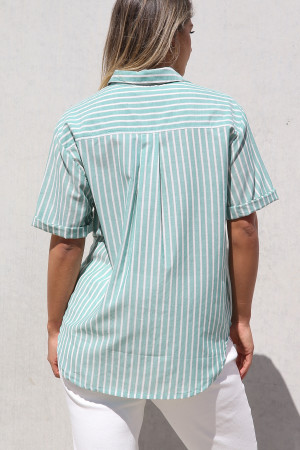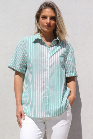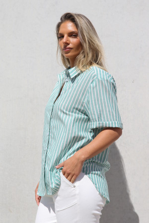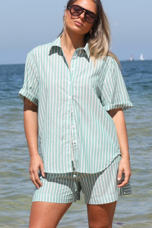 The Sundrenched shirt, crafted from soft to the touch yarn dyed stripe cotton, offers unmatched comfort and effortless style. It is designed with a button-through front fastening, two-piece shirt collar, double yoke at the shoulder and a curved shirt tail hemline. The short sleeves are designed to be softly rolled back for a laid-back, relaxed vibe. Worn as a stylish light weight set with the Sundrenched short it is perfect for sunny getaways and lazy days on the beach. Loose and breezy it is perfect for wearing over bathers -- or pair it with other coordinating favourites in your wardrobe.