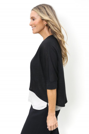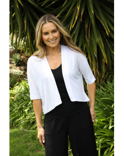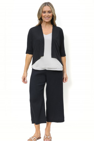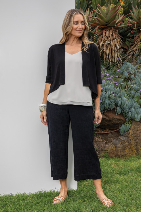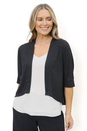 Elevate your layering collection with this elbow-length dolman sleeve cropped cardigan, crafted from our signature Modal/polyester single jersey knit – a luxuriously soft, breathable fabric. The effortless edge-to-edge design with the asymmetrical hemline - longer at the back than the front - make this cardigan the ideal co-ordinate for wide pants and sleeveless dresses offering a relaxed, modern silhouette. Lightweight and comfortable this versatile cardigan is the perfect finishing layer.