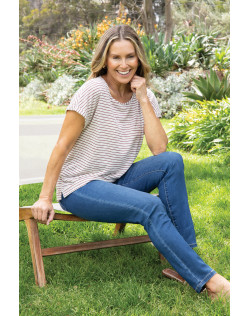 This “must have” tee now in a burgundy or black stripe - dressed up or down is perfect for any occasion. Pop it on with jeans or shorts for casual weekends or coordinate with pants and a blazer or cardigan for a lunch date or a day at the office. It will mix n match effortlessly throughout your wardrobe.