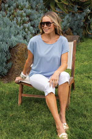 This “must have” tee - dressed up or down is perfect for any occasion. Pop it on with jeans or shorts for casual weekends or coordinate with pants and a blazer or cardigan for a lunch date or a day at the office. It will mix n match effortlessly throughout your wardrobe.