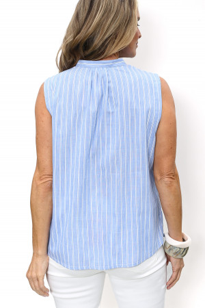 Cotton/viscose stripe sleeveless blouse